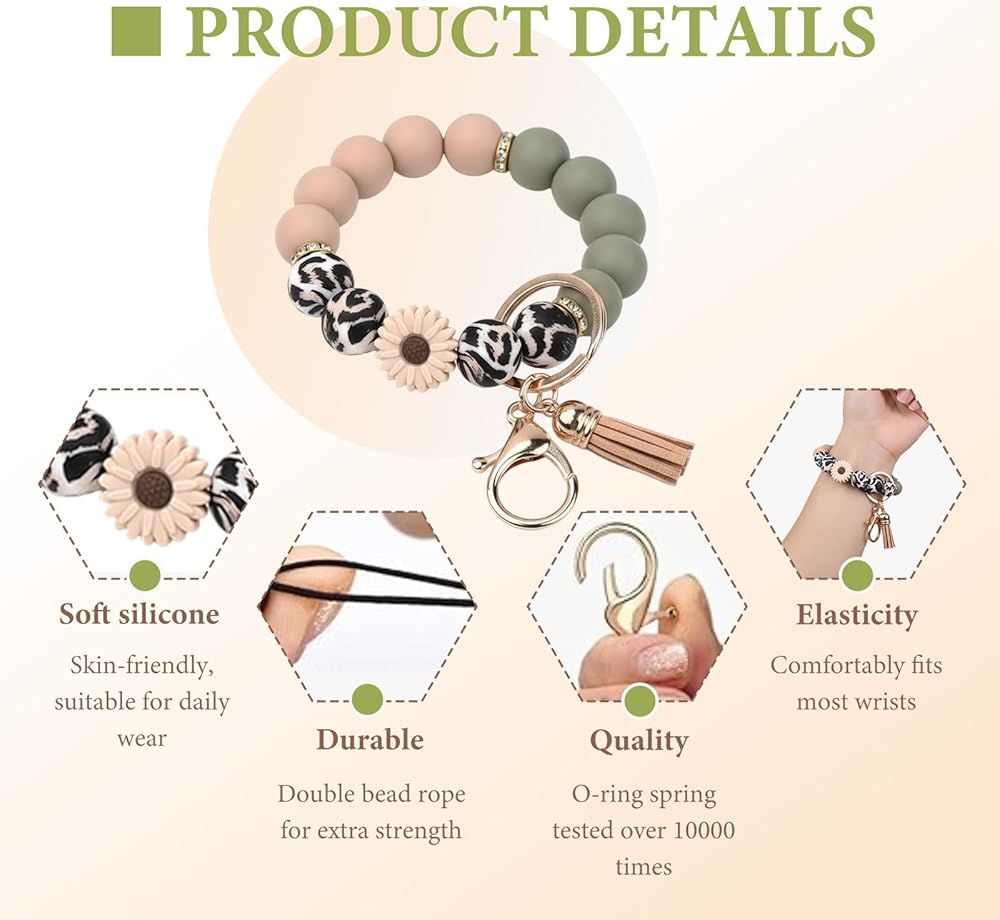 مواد عالية الجودة: يبلغ قطر كل سوار من سلسلة المفاتيح المصنوعة من السيليكون حوالي 2.67 سم، مما يوفر ملاءمة ناعمة ومرنة لمعظم معصم النساء. مصنوعة من السيليكون الناعم والمتين، سلاسل المفاتيح المطرزة هذه مريحة في الارتداء وسهلة التنظيف. تظل حلقة المفاتيح ومشبك جراد البحر لامعين وآمنين - مثاليين لحمل مفاتيحك أو بطاقاتك أو ملحقاتك الصغيرة