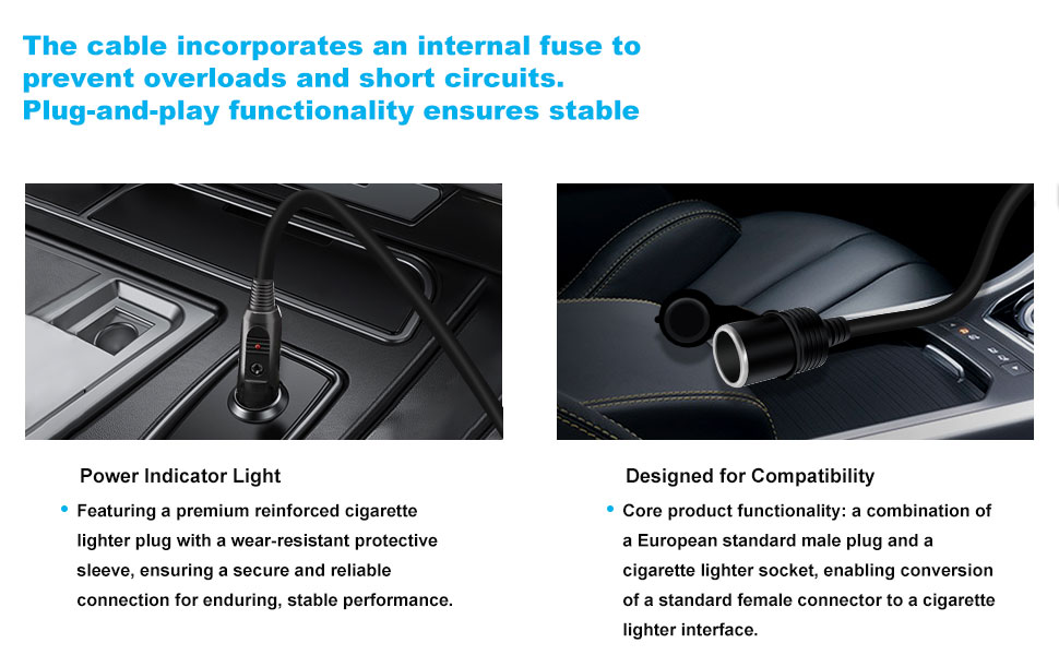 قابس ولاعة السيارة متين ويتناسب بشكل آمن مع مقابس ولاعة السجائر، قابس التوصيل الآمن ممتاز ولا يهتز أو ينقطع، حتى على الطرق الوعرة