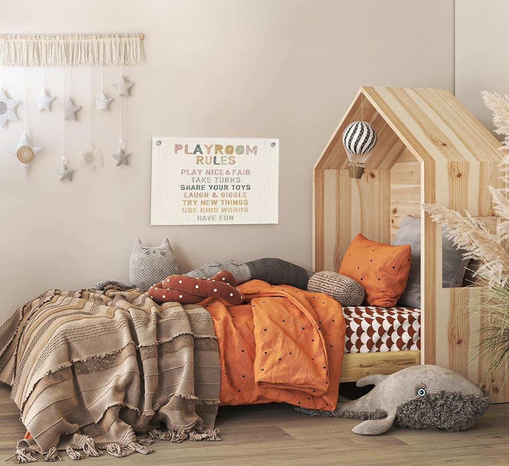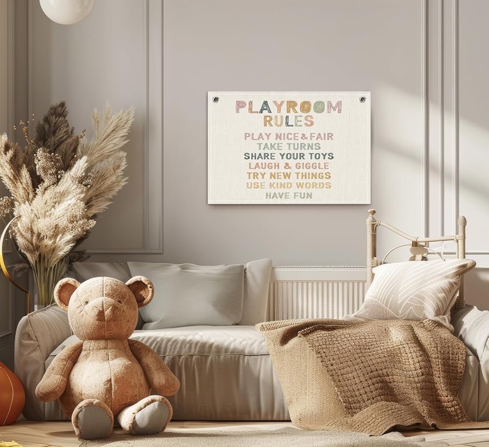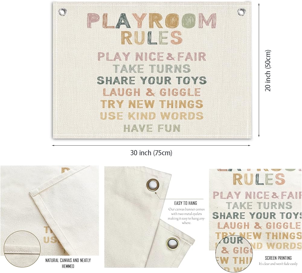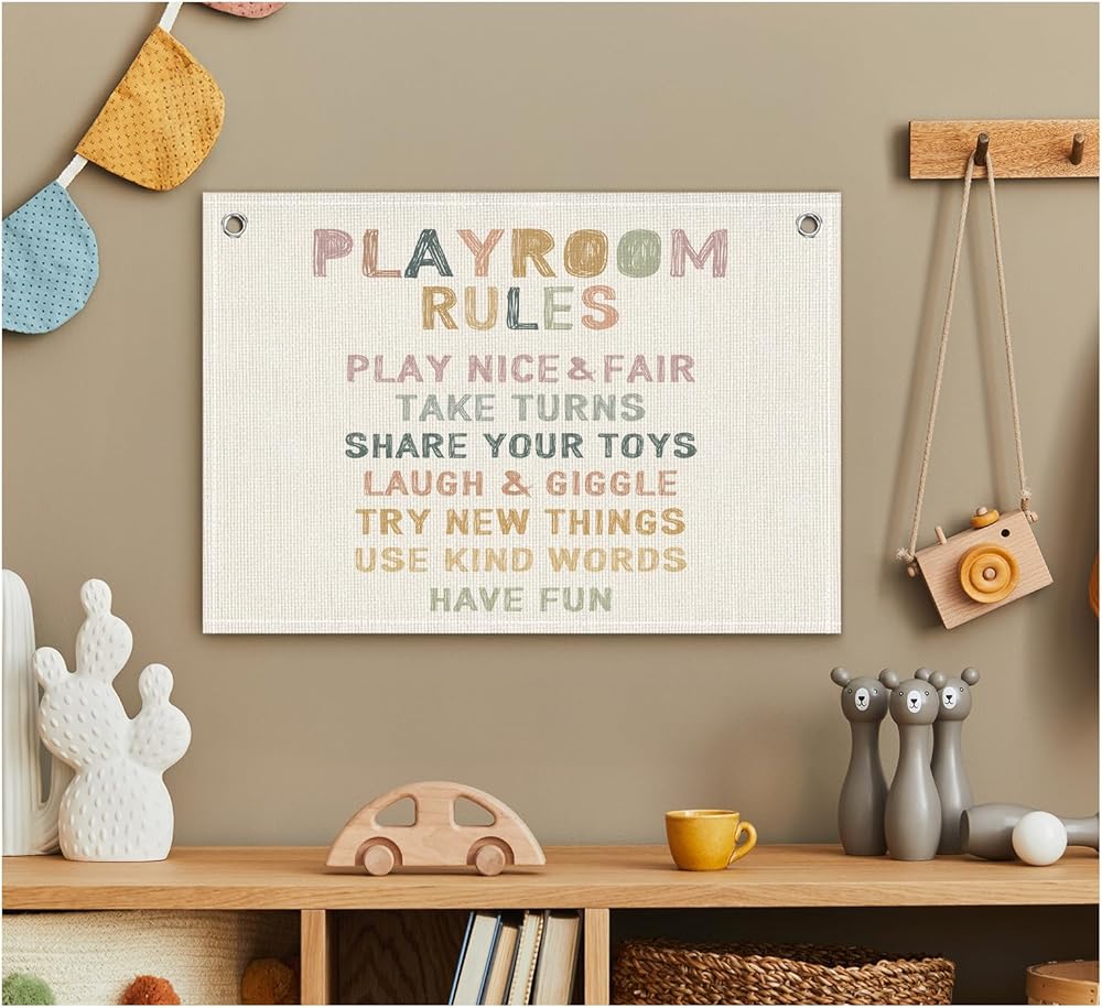 kdhty ديكور جدار غرفة اللعب، قواعد غرفة اللعب قماش الجدار شنقا راية العلم، غرفة اللعب جدار الفن، ديكور غرفة اللعب لغرفة الأطفال الحضانة المنزل المدرسة، ديكور غرفة اللعب للأطفال، أساسيات غرفة اللعب، 30 × 20 بوصة