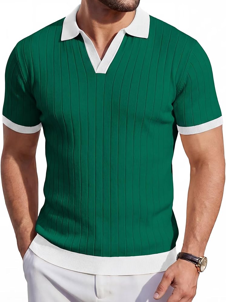 تتميز قمصان البولو الرجالية ذات الأكمام القصيرة بياقة بألوان متباينة ورقبة على شكل حرف V، وكتلة من الألوان مع تصميم مزخرف عصري يعزز التأثير البصري، والنسيج الناعم يوفر لك شعورًا رائعًا طوال اليوم ويمنحك تجربة ارتداء أفضل.