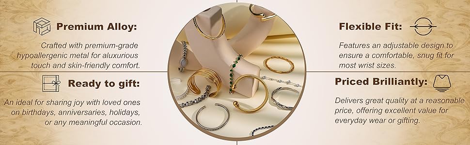الحجم والوزن: هذه الأساور القابلة للتعديل للنساء تناسب مقاسات المعصم من 2 إلى 2.5 بوصة. يتيح التصميم ذو الطرف المفتوح سهولة التعديل لملاءمة مخصصة، مما يضمن الراحة دون الضغط أو الانزلاق. خفيف الوزن وناعم، هذا السوار الفضي الأنيق مثالي للارتداء اليومي