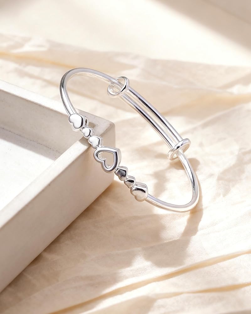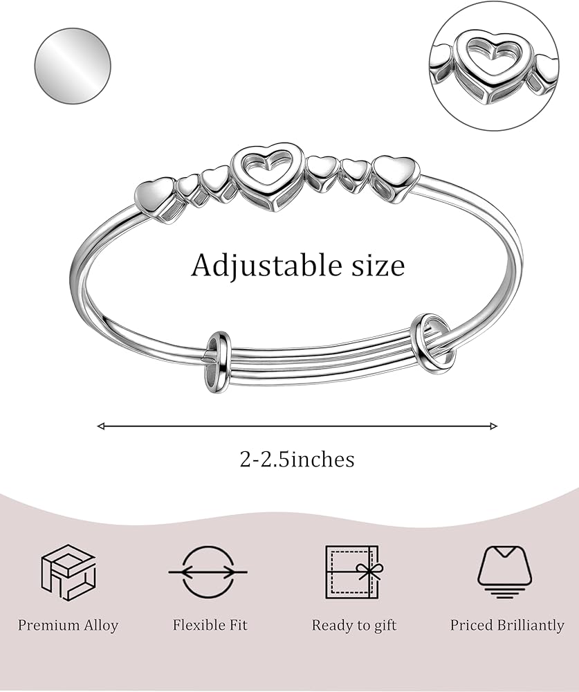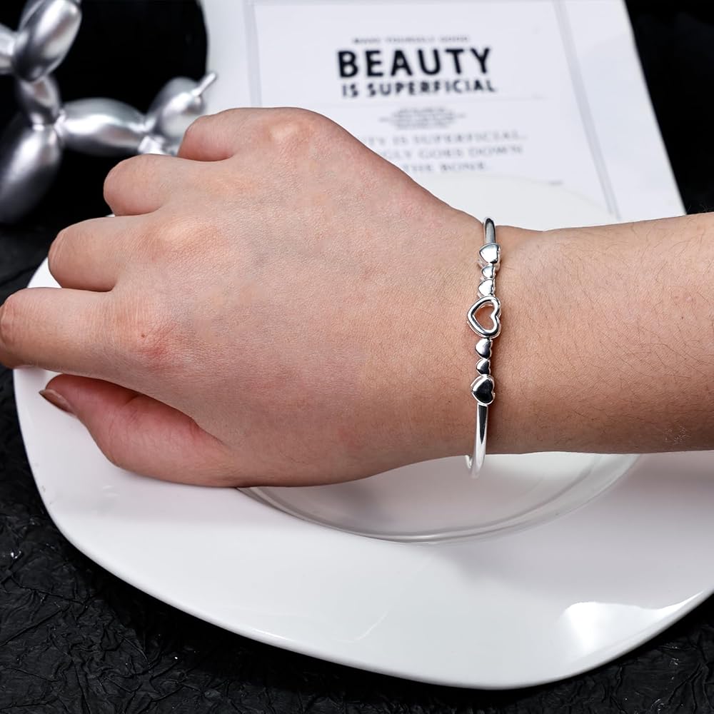 المناسبات والأناقة: سوار الحب هذا مصنوع من سبيكة مطلية بالفضة، ويتميز بسطح مصقول لامع ولمسة ناعمة. تضيف تفاصيل القلب المجوفة مظهرًا خفيفًا وشبابيًا، مما يجعلها مناسبة للارتداء اليومي. بسيط ولكنه أنيق، هذا السوار الفضي للنساء يظهر نمطًا نظيفًا يسهل تنسيقه مع أي ملابس