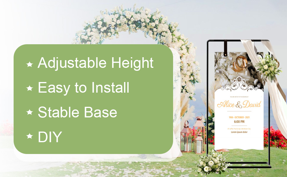 مادة معدنية: حامل الملصقات الخاص بنا مصنوع من معدن سميك متين وعالي الجودة. سهل التجميع ومتين. لافتة ترحيب بالزفاف، أو عرض مخطط الجلوس، أو لافتة ترحيب بالباب الأمامي. يضمن البناء القوي استخدامًا طويل الأمد سواء في الداخل أو الخارج.