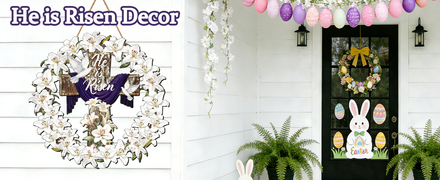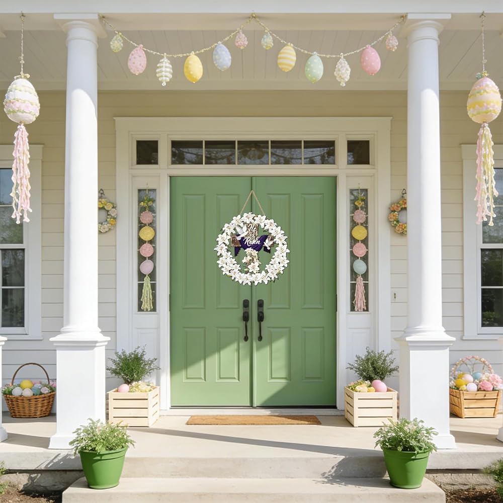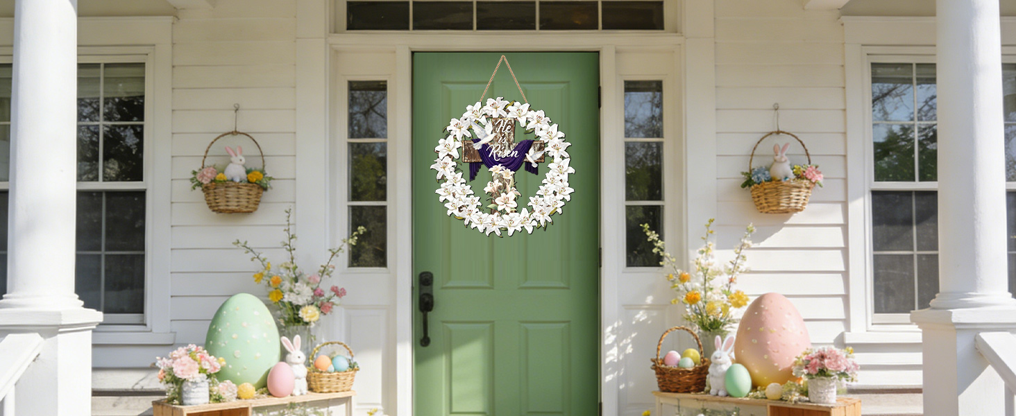 هدية مدروسة ذات طابع إيماني: يُعد ديكور باب عيد الفصح هذا خيارًا صادقًا للعائلات التي تحتفل بالتقاليد المسيحية، ومناسب كزينة إكليل عيد الفصح أو أكاليل مرتفعة للمنزل والكنيسة