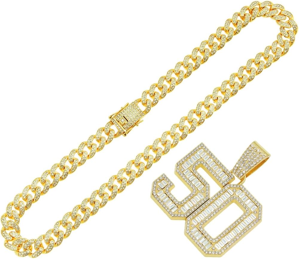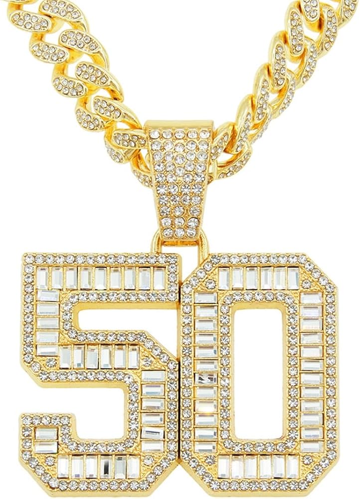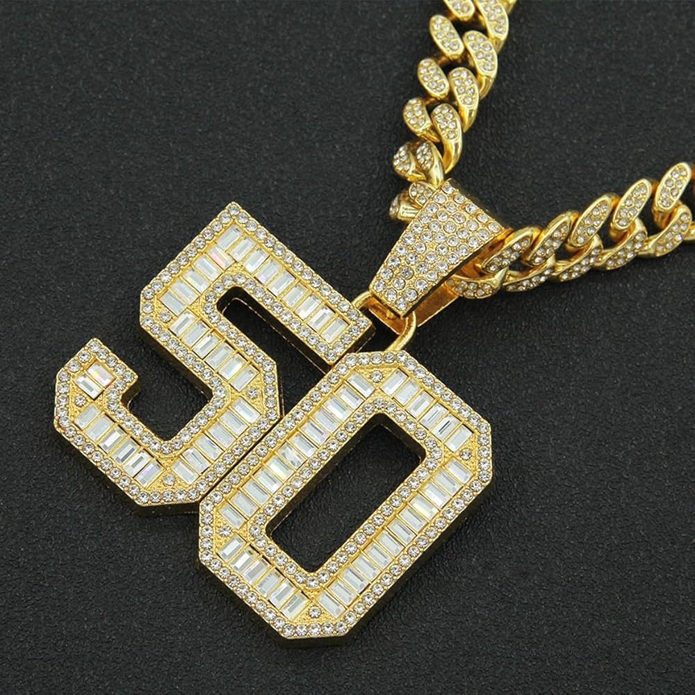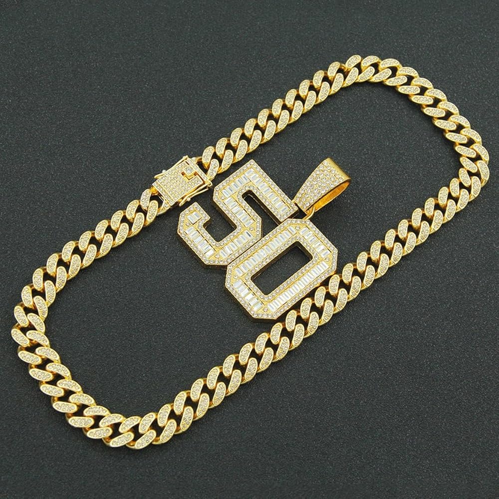 Gold No.50 cuban chain necklace, hip hop number 50 pendant necklace for men, iced out lucky No.50 basketball chunky necklace, sparkling number 50 basketball sports athlete cuban necklace rock rapper jewelry, men's gothic punk rock No.50 basketball player cuban link chain, rhinestone basketball lovers statement necklace accessories