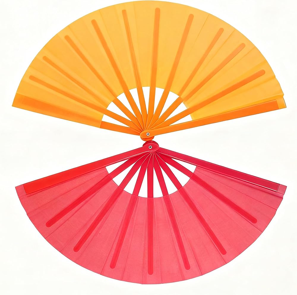Elegant Design: The package comes with 2 large folding kung fu fans. It opens easily with a simple flick of the wrist, produces a loud and clear sound when waved rapidly, and operates smoothly to open and close.