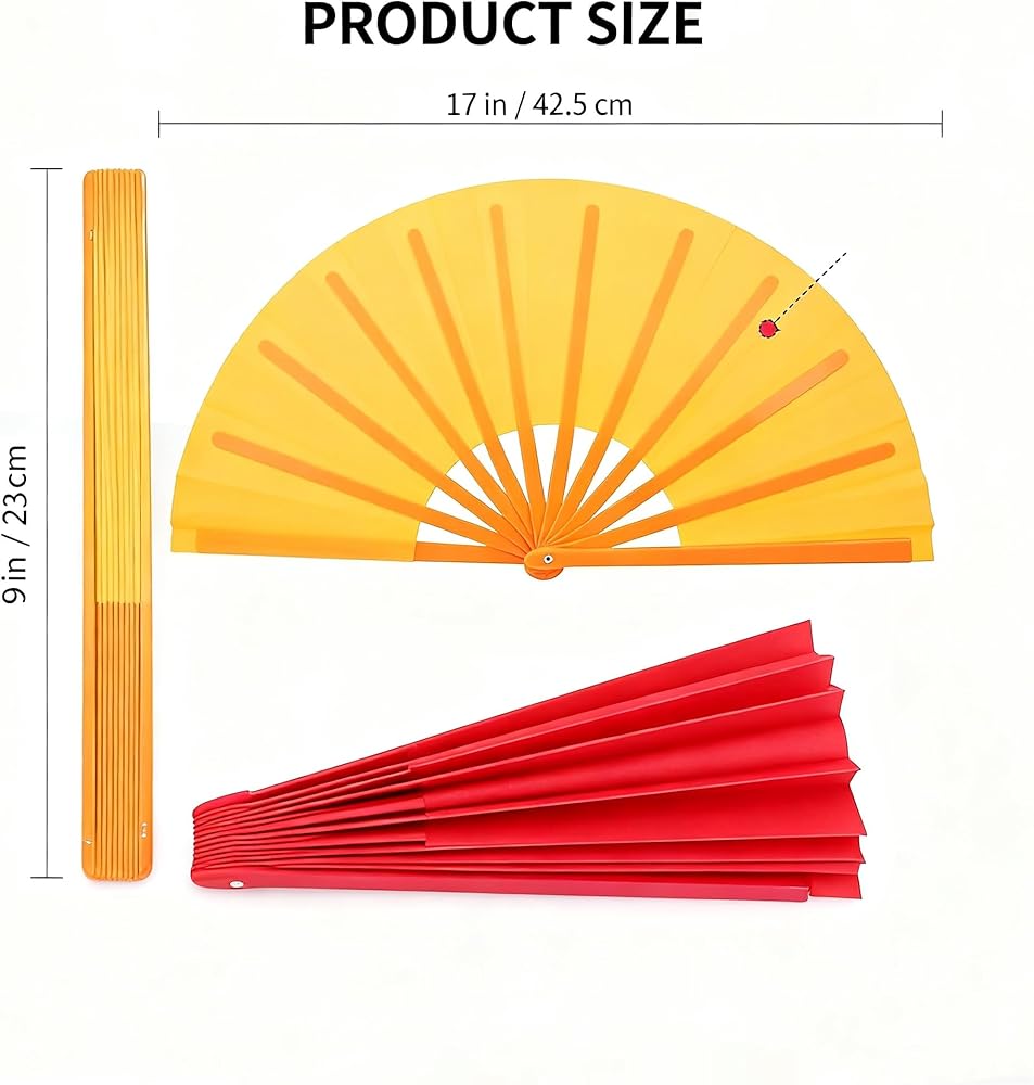 Material & Size: Big hand fan from high-quality plastic and colorful nylon fabric, the fan is lightweight yet durable. Each fan measures approximately 17 x 9 inches / 42.5 x 23 cm (length x width, when fully unfolded).