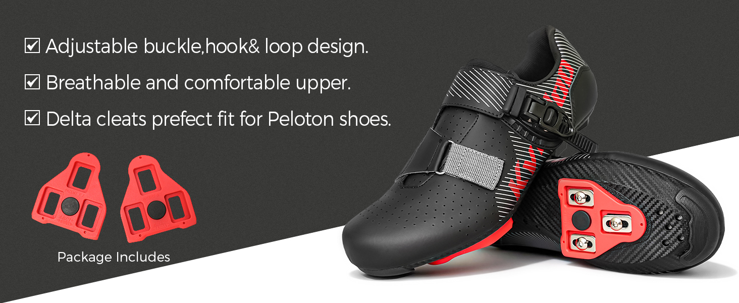 مع مرابط دلتا: يتم تضمين مجموعة من مرابط دلتا في العبوة للتركيب الذاتي ولا يلزم شراء منفصل. يتناسب مع أحذية Peloton الرجالية ويمكن استخدامه في أي مناسبة، بما في ذلك ركوب الدراجات المنزلية ورياضات صالة الألعاب الرياضية وسباقات الطرق، إلخ.