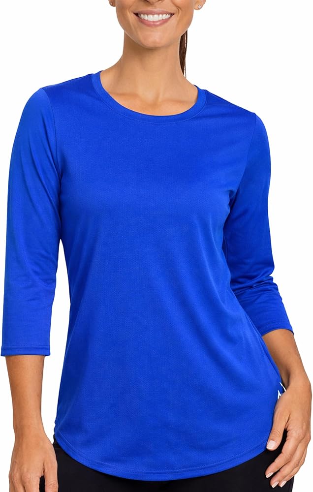 Engineered to dry quickly and resist cling, the HydroFreeze X fabric helps maintain comfort during active days while holding its shape wash after wash. When temperatures rise, comfort matters. The Arctic Cool Women's 3/4 Sleeve Cooling Scoop Neck T-Shirt is powered by HydroFreeze X technology, a sweat-activated fabric designed to help keep you comfortable during warm weather, travel, and everyday activity. HydroFreeze X responds to heat and moisture by dispersing sweat across the surface of the fabric, supporting evaporative cooling as airflow increases. The result is a lightweight, breathable shirt that helps you feel cooler whether you're spending time outdoors, traveling, or staying active during the summer months. Built with moisture-wicking, quick-dry performance fabric, this cooling shirt pulls sweat away from your skin and dries quickly to help reduce cling and discomfort in humid conditions. The relaxed fit and soft stretch construction provide easy movement and everyday comfort, while the scoop neckline and 3/4 sleeve design offer flattering coverage and versatile style. Designed for warm weather conditions, the shirt also features UPF 50+ sun protection to help shield skin during extended outdoor exposure. From travel days and morning walks to casual outings and everyday wear, it delivers dependable comfort when temperatures climb. Finished with a clean silhouette and durable construction, the Arctic Cool Women's Cooling 3/4 Sleeve Shirt holds its shape wash after wash while maintaining breathability and comfort. Powered by HydroFreeze X technology, it's built to keep up with warm days, movement, and everyday life.
