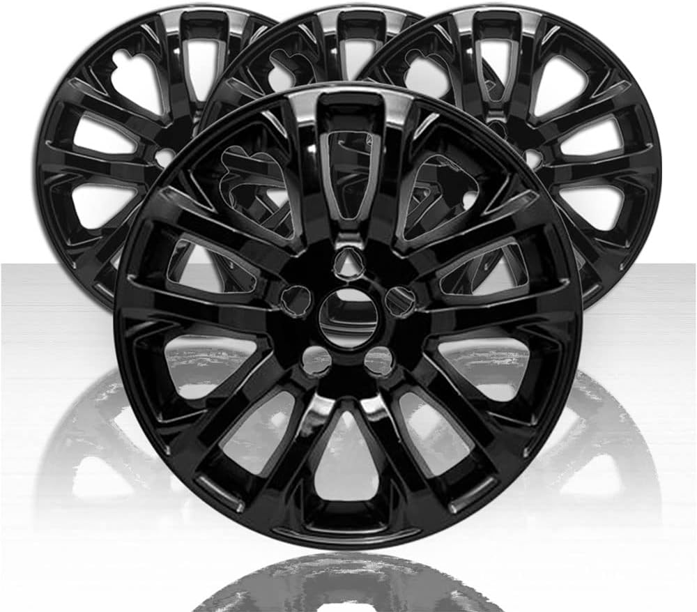 This set of 4 wheel skins is perfectly designed to fit your vehicle and easily automotive-hubcaps in minutes! These wheel skins are constructed from durable, automotive grade ABS plastic and feature an attractive gloss black finish for a custom look