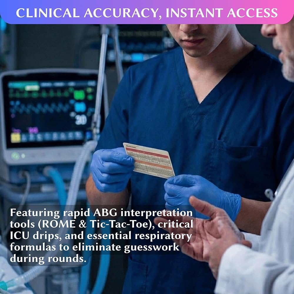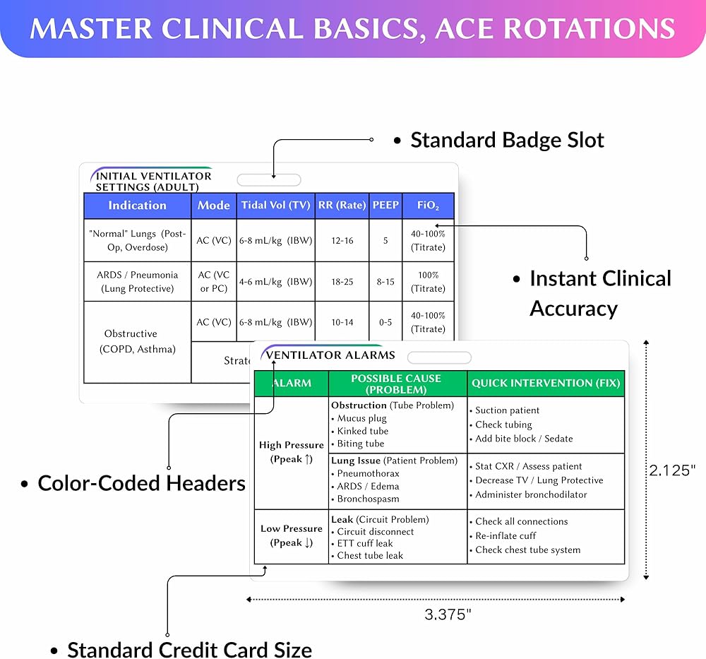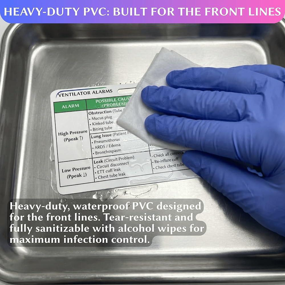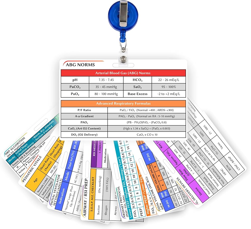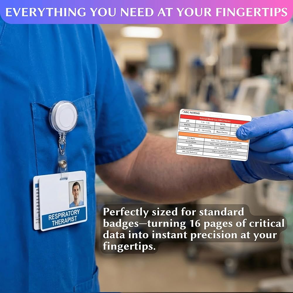 [Lightweight & Scrub-Ready] Don't let heavy guides drag you down. The included respiratory badge reel holds these slim, waterproof PVC cards without sagging. Durable enough for daily sanitizing, they fit perfectly behind your RT badge or ID for streamlined workflow.