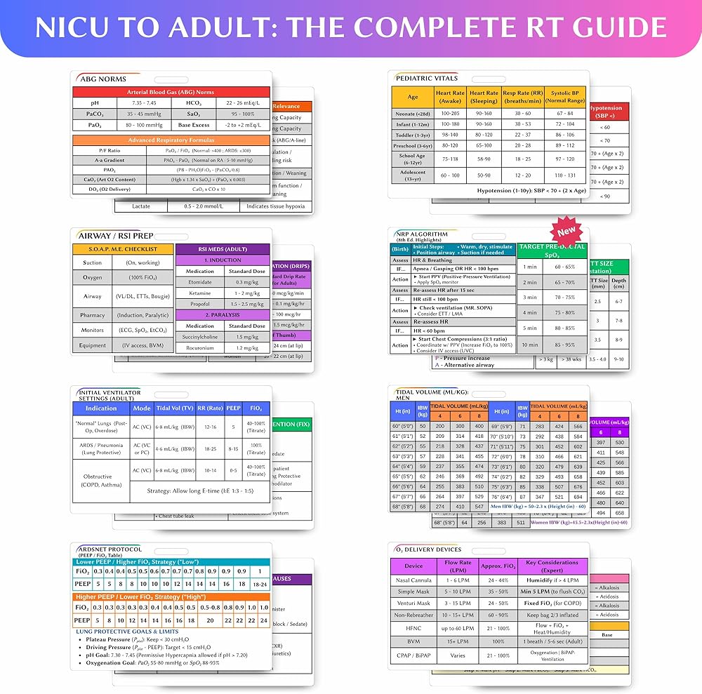 [High-Contrast & Readable] Stop squinting at blurry text. Our color-coded design allows rapid retrieval of Tidal Volume charts and Airway meds in emergencies. Accurate to current standards, making it one of the top respiratory therapy student essentials for exams and clinicals.