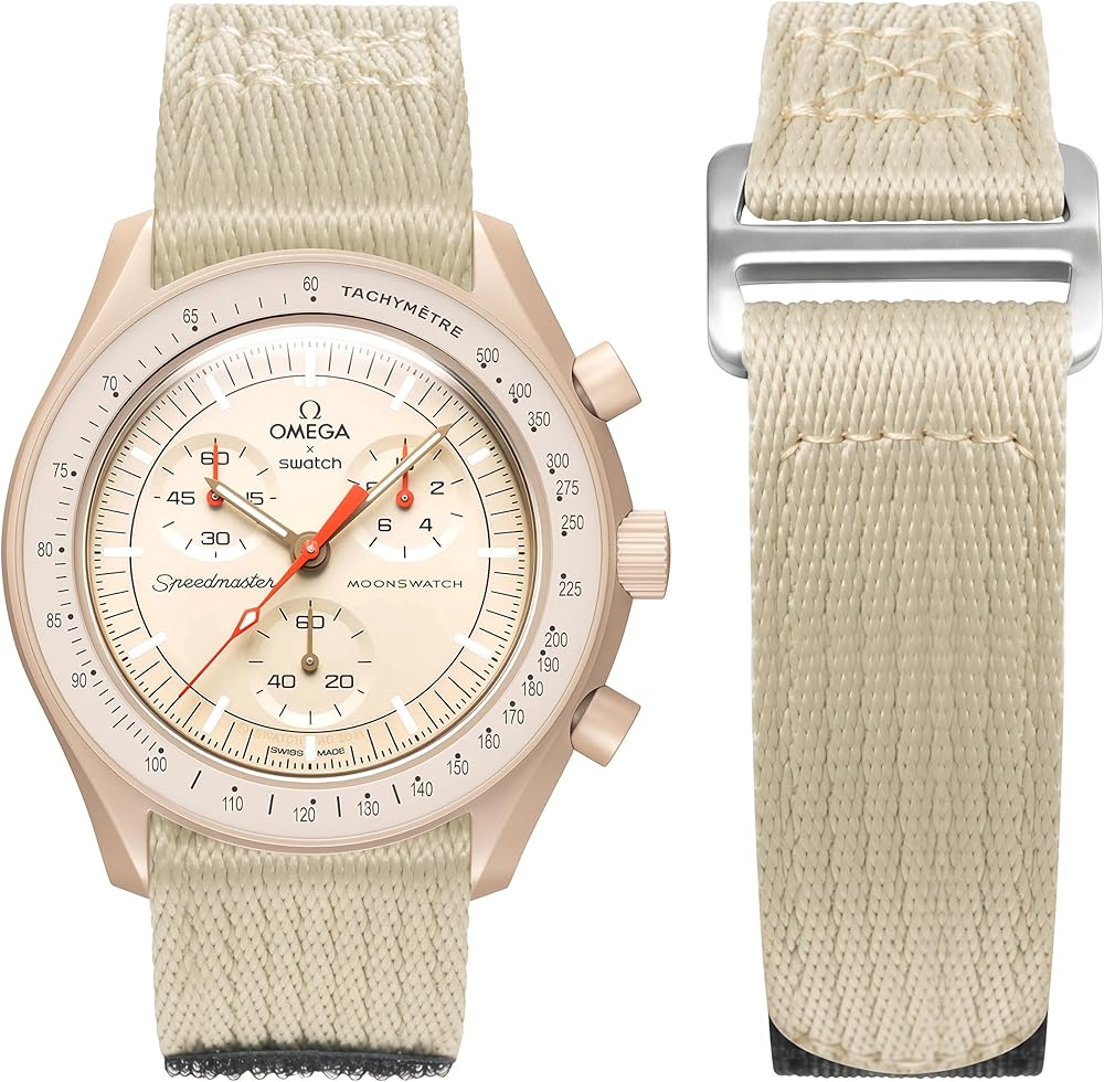 Elevate your omega moonwatch with our collection of premium watch strap with stainless buckle.These straps are designed to be compatible with various models, including compatible Omega x Swatch MoonSwatch Speedmaster and universal 20mm lug watches. Whether you're looking for a nylon strap for Omega Swatch Mercury, Venus, Earth, Mars, Jupiter, Saturn, Uranus, Neptune, Pluto, Sun, Moon Moonphase and 20mm nylon strap in general, our selection has you covered.