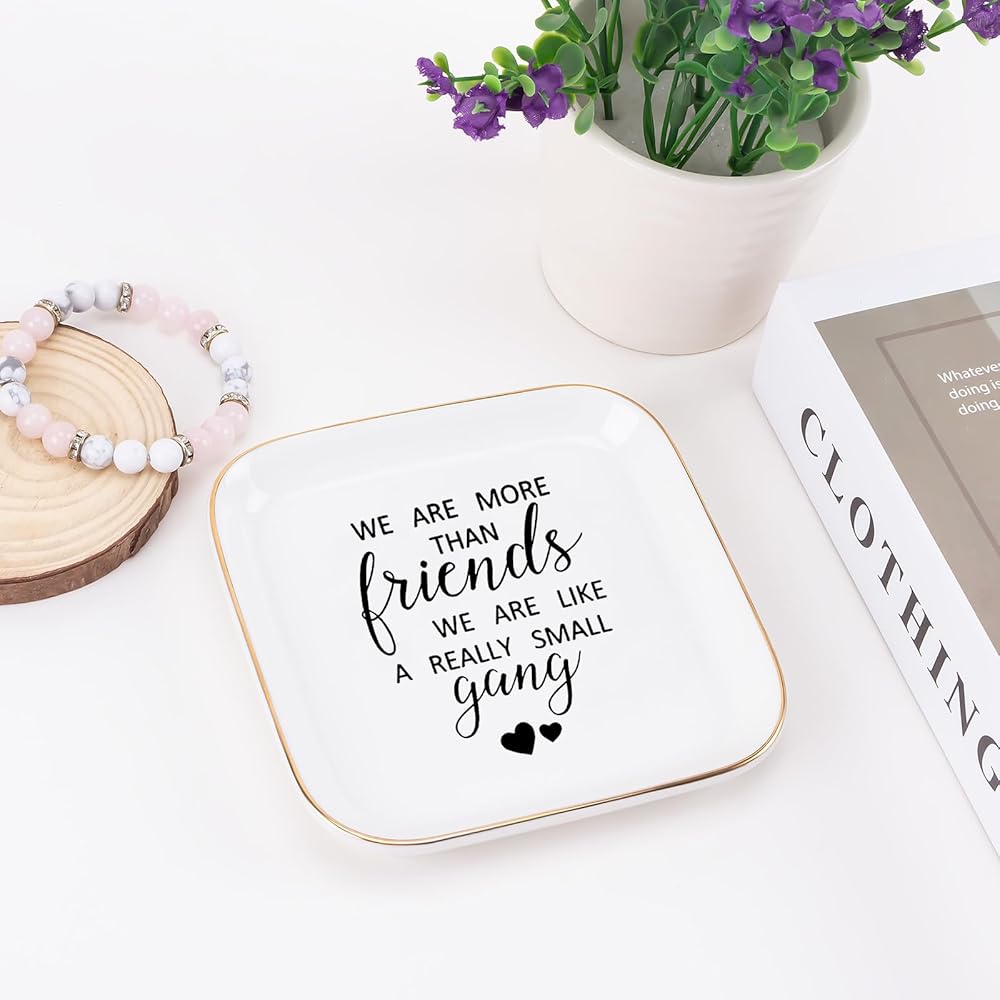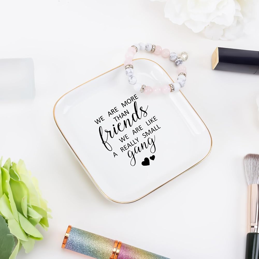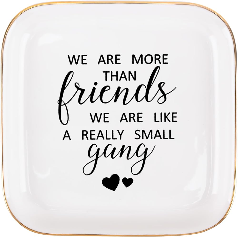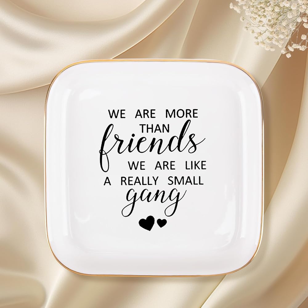• هدايا عيد ميلاد أفضل صديق للنساء: صينية مجوهرات الصديق هذه مطبوعة بشعار حميم، "نحن أكثر من أصدقاء، نحن مثل عصابة صغيرة حقًا"، مما يوضح تمامًا رابط الصداقة غير القابل للكسر. إنها التكريم النهائي لصديق عزيز، يحتفل بالصداقة الحميمة المخلصة والمبهجة.