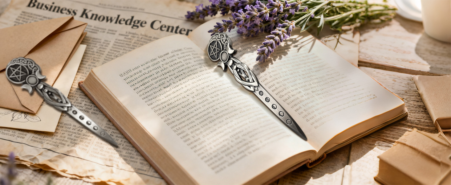 【ديكور وعملي】 - يمكن استخدام فتاحة الحروف العتيقة هذه كديكور روحي أو ككتاب عند عدم الاستخدام؛ تضفي نقوش القمر الثلاثي/النجم الخماسي المعقدة مساحتك بسحر غامض، مما يجعلها هدية مثالية لمحبي الميتافيزيقيين.