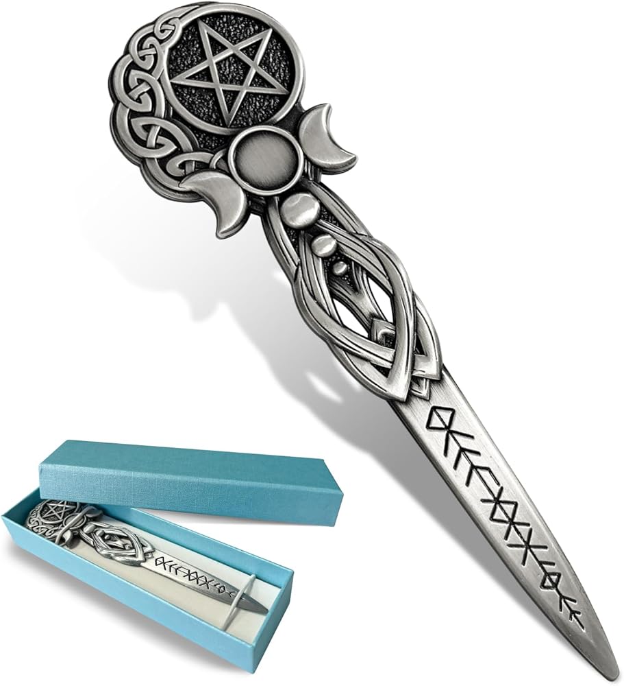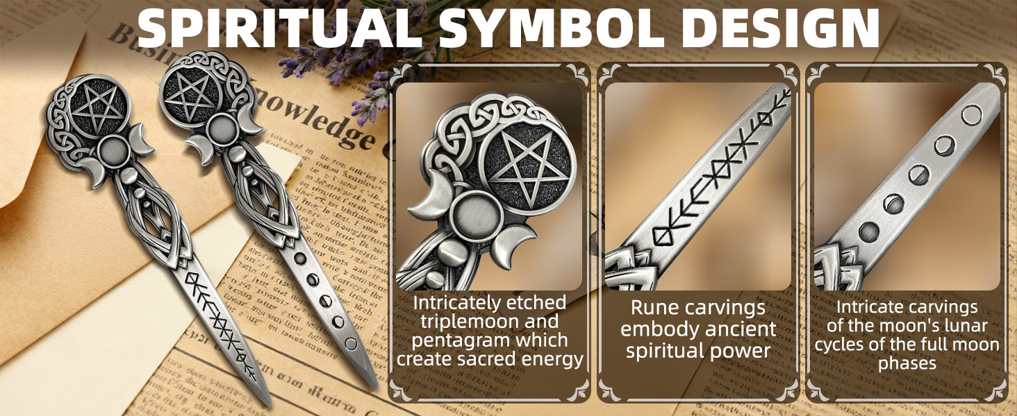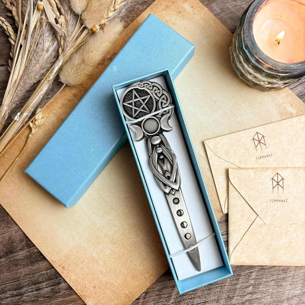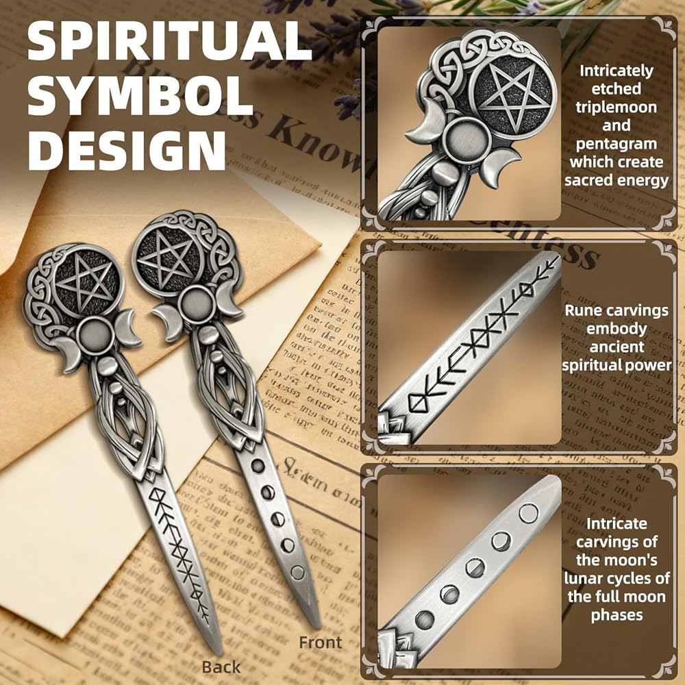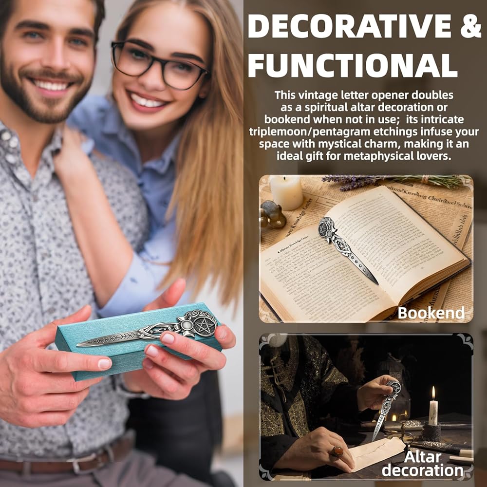 【تصميم رمز روحي】- القمر الثلاثي والخماسي المحفور بشكل معقد مما يخلق طاقة مقدسة، فتاحة البريد المعدنية مثالية لممارسي الويكا وعشاق التاروت والباحثين الروحيين.