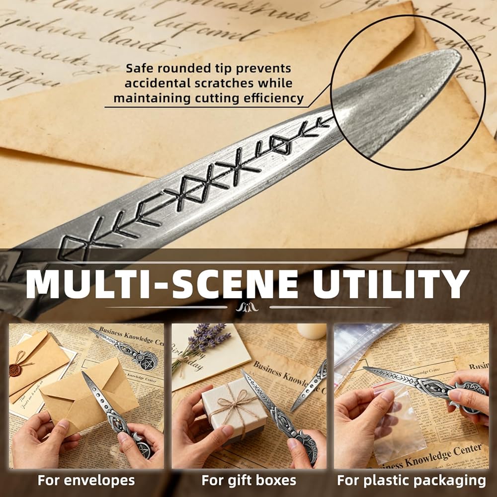 【متعددة الاستخدامات】- فتاحة الحروف الفاخرة تفتح الأظرف والبريد وصناديق الهدايا والتعبئة البلاستيكية دون عناء؛ طرف مستدير آمن يمنع الخدوش العرضية مع الحفاظ على كفاءة القطع.
