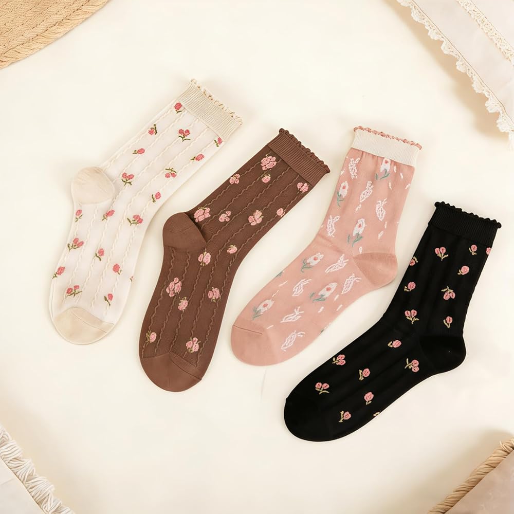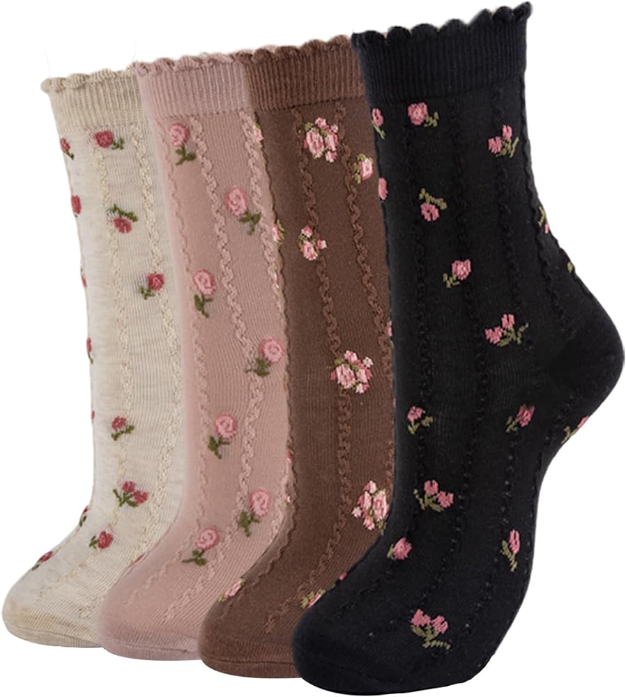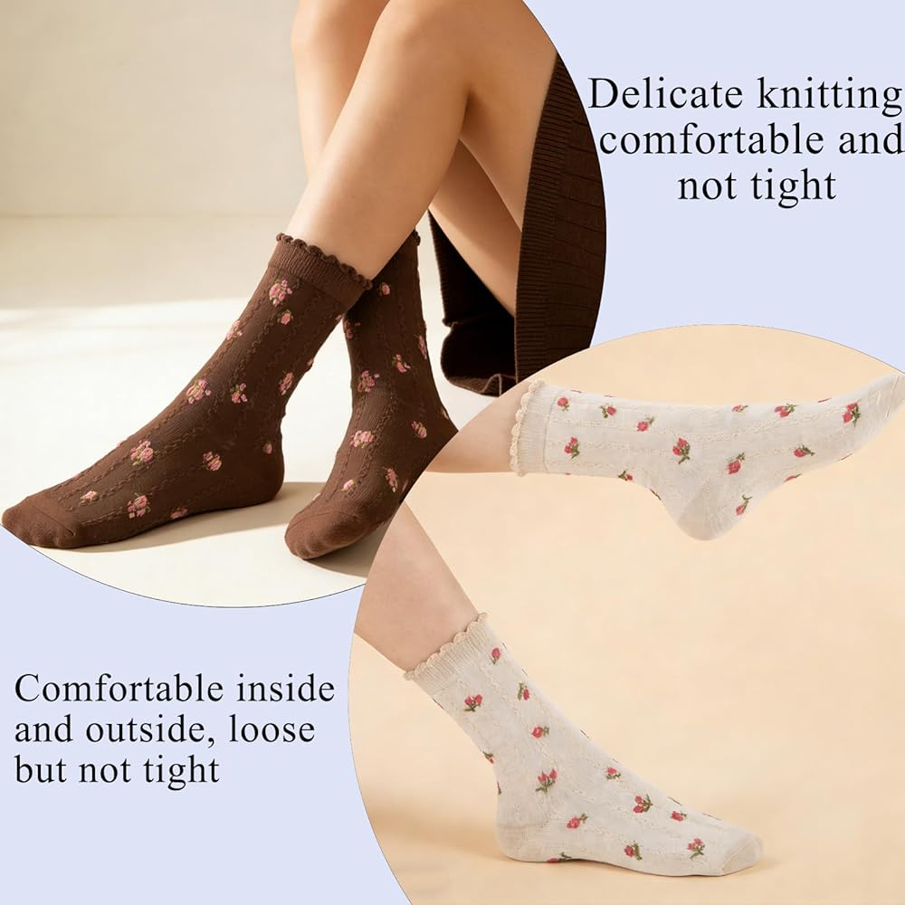 Vintage Floral Designs for Every Season: Vintage flower ankle socks featuring multiple colors and classic patterns, these socks for women cute crew socks offer versatile styling options to match your outfits all year round perfect for adding a cute, feminine touch to any look