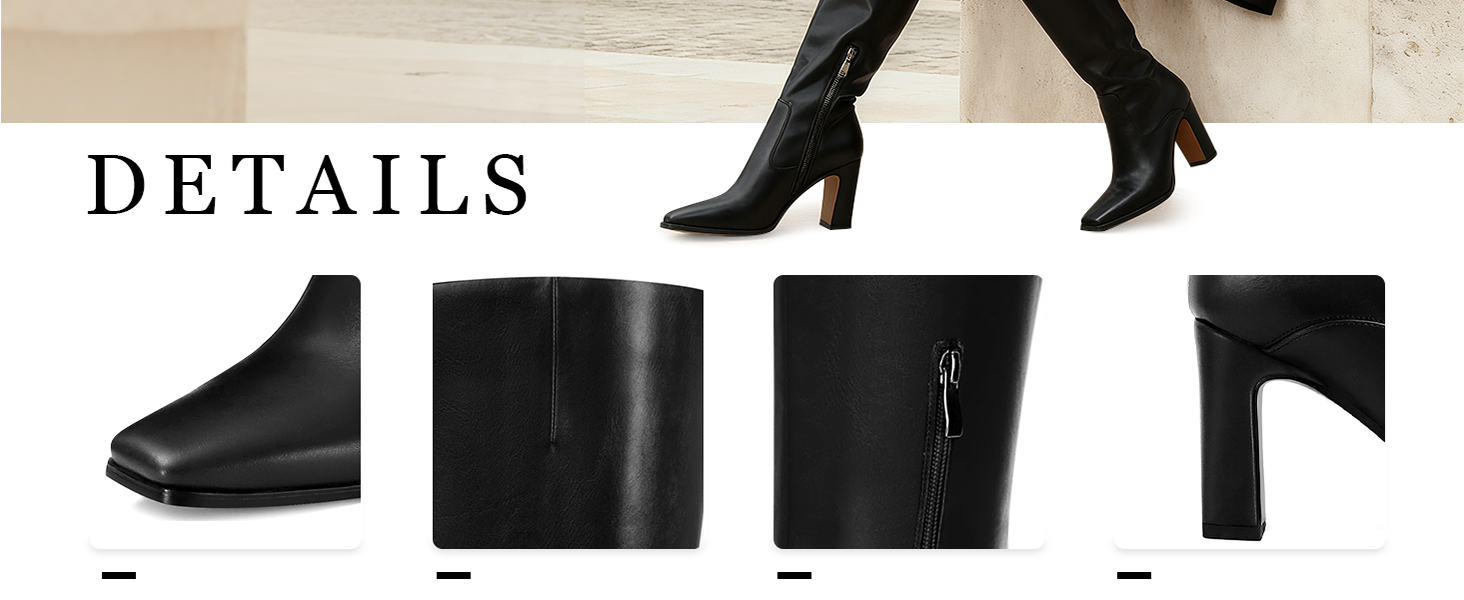 تصميم فريد من نوعه عند أصابع القدم: تتميز الأحذية النسائية ذات الرقبة العالية بتصميم عصري عند أصابع القدم المربعة مما يوفر مقاسًا واسعًا ومريحًا مع طراز أنيق إضافي.