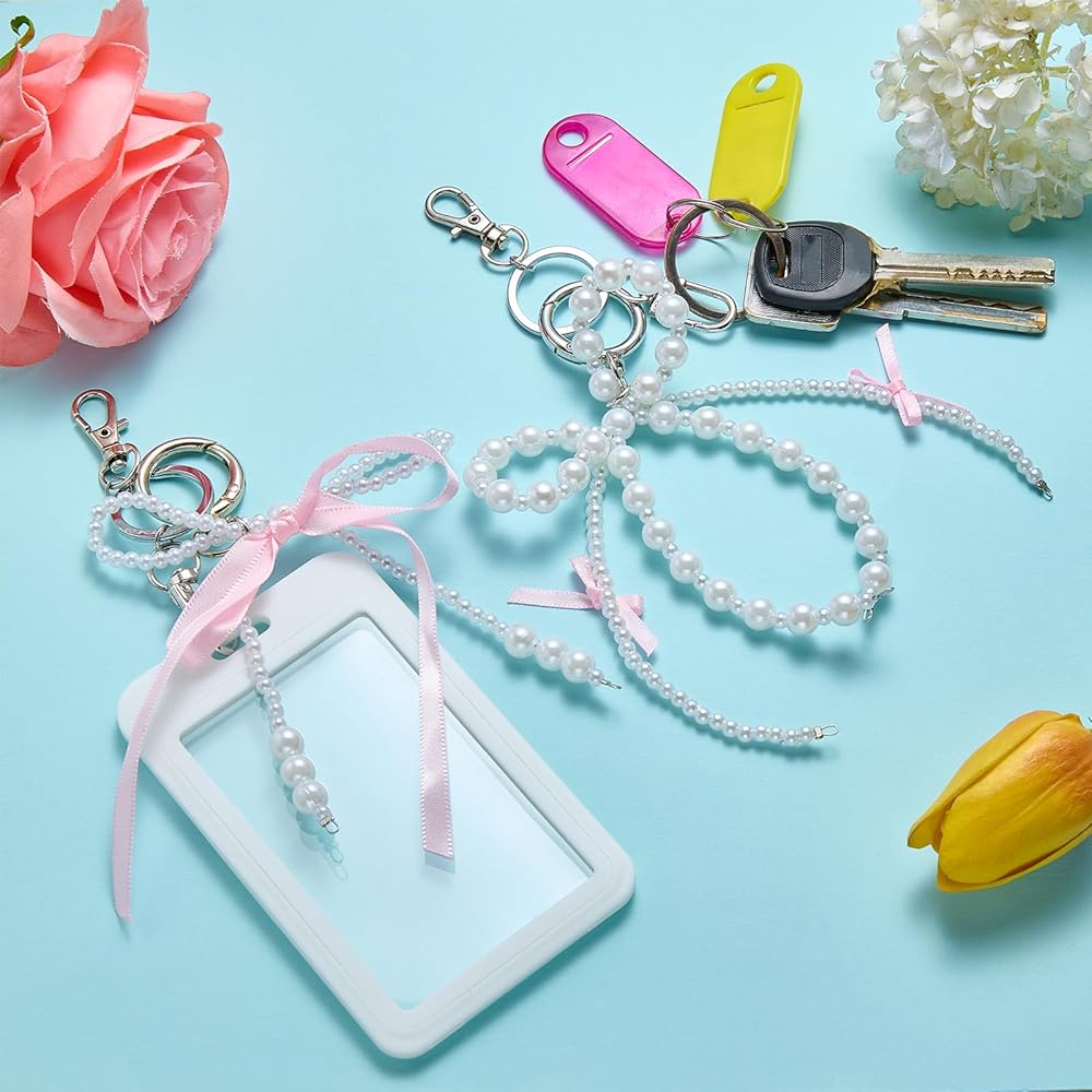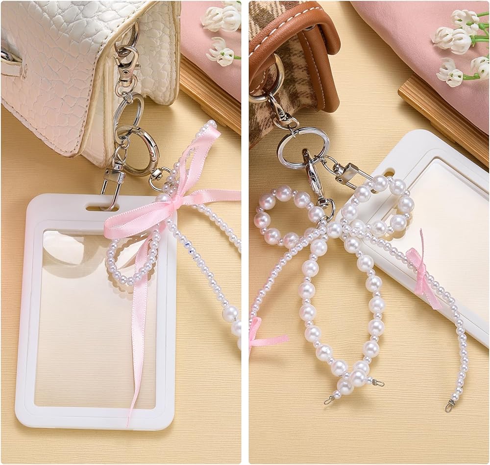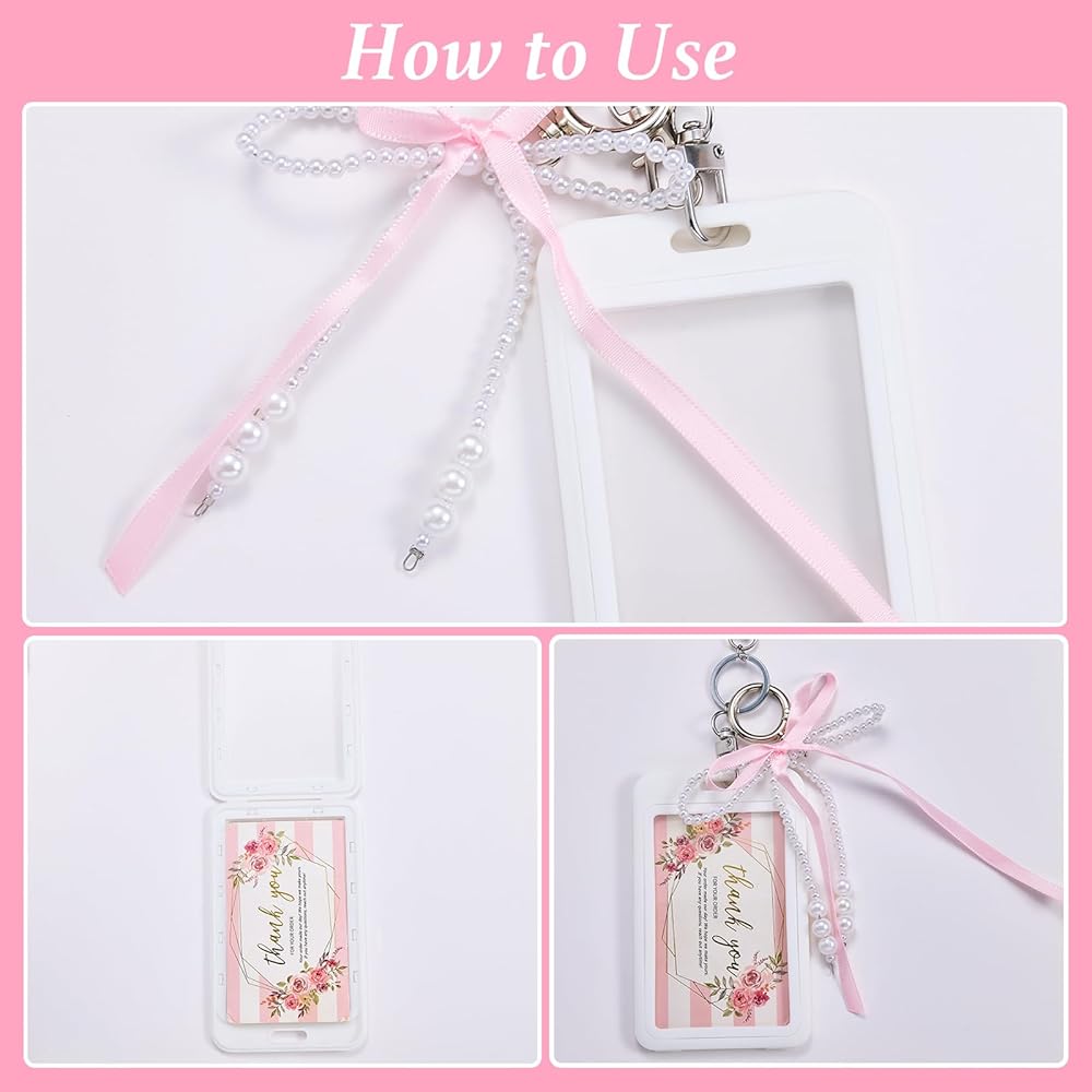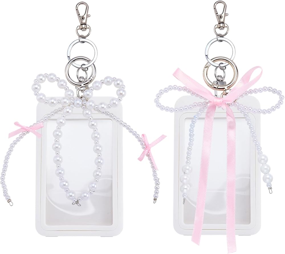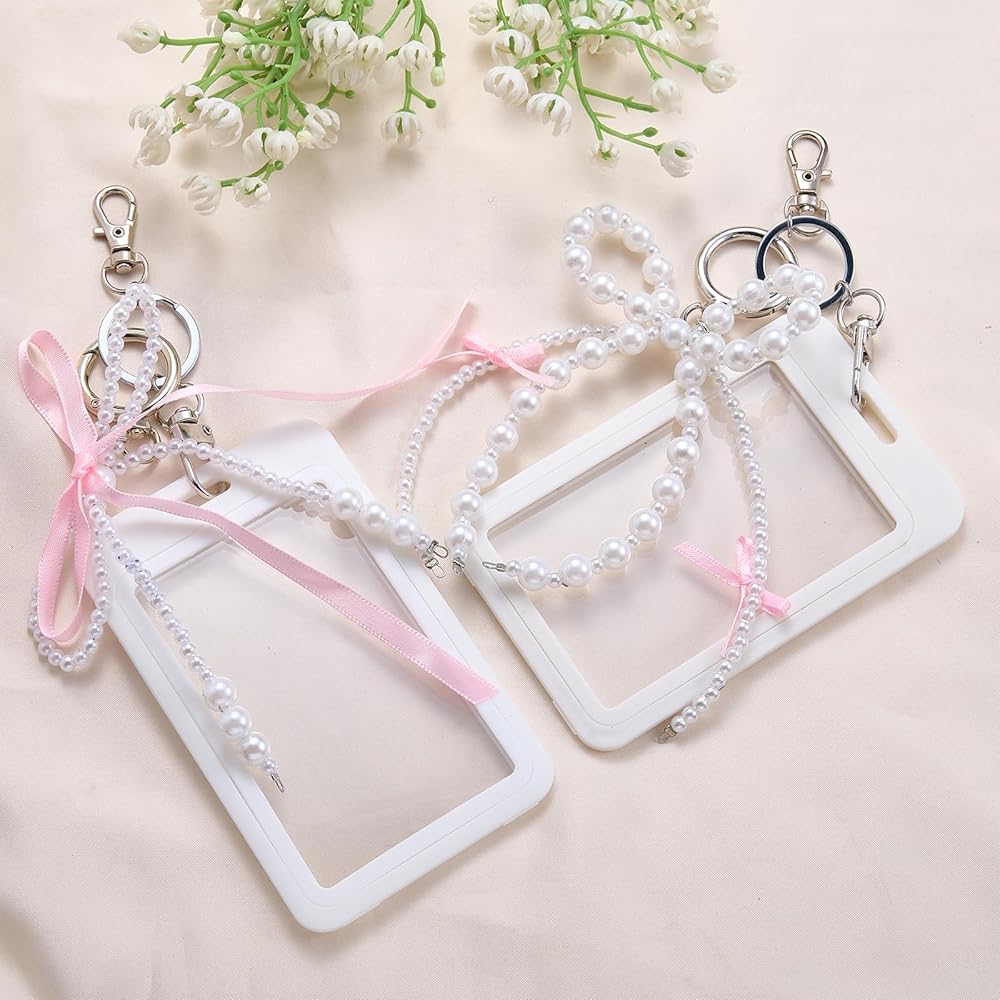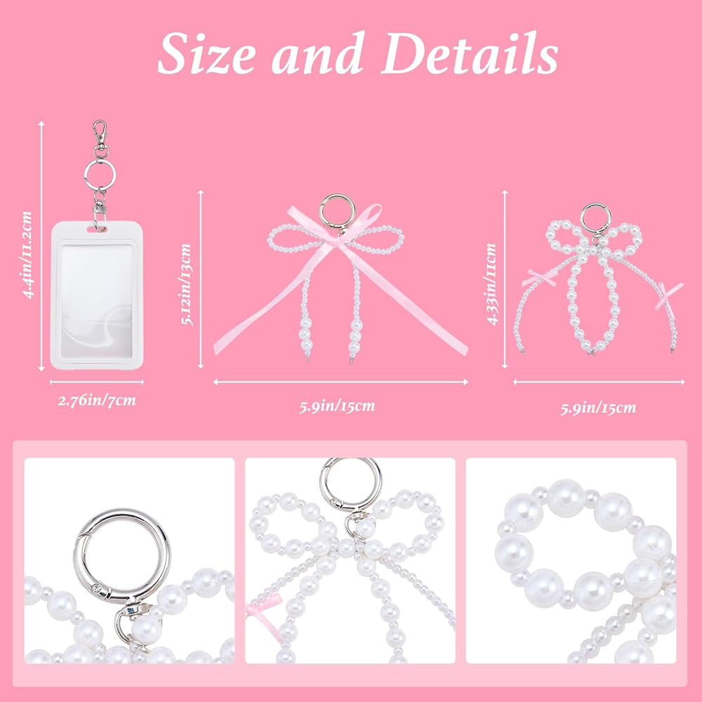 Package & Size - Includes 2 sets of detachable card holders, each with a unique pearl bow charm. Both holders measure 2.76" W × 4.41" L × 0.24" T (70mm × 112mm × 6mm) and fit cards up to 3.35" L × 2.07" W (85mm × 52.5mm)