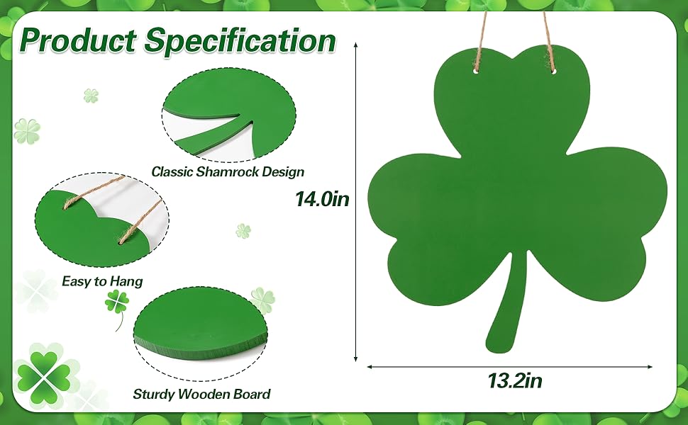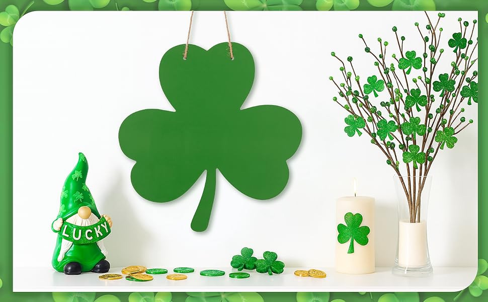 【استخدامات متعددة】 رائعة للأبواب الأمامية، أو الجدران، أو المواقد، أو الأرفف، أو الباحات، هذه اللافتة المعلقة على شكل البرسيم تكمل ديكور العطلات في المزرعة أو الريفي أو الاحتفالي، مما يضفي لمسة أيرلندية ترحيبية في الداخل أو الخارج.