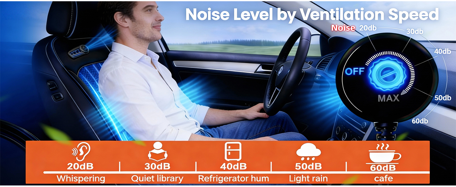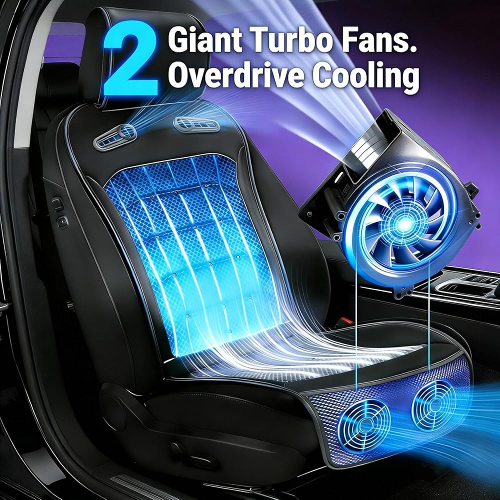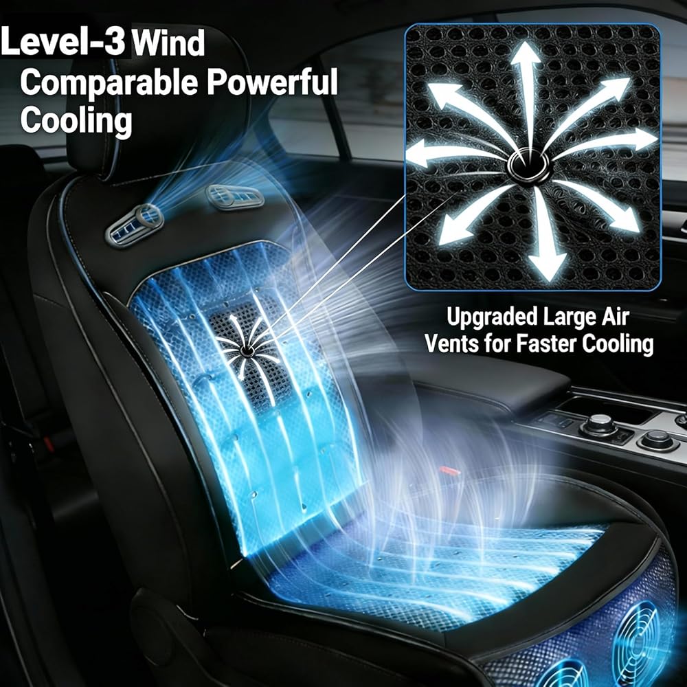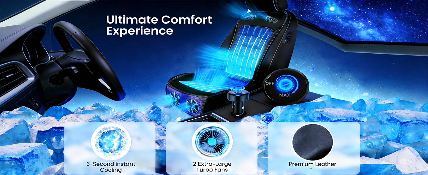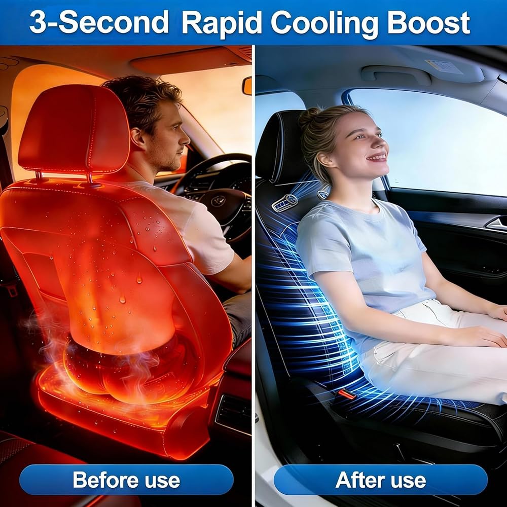 【تبريد فوري، تبريد لمدة 3 ثوانٍ】مقعد السيارة المبرد مجهز بمروحتين توربو معززتين، مما يبرد ظهرك وأردافك في 3 ثوانٍ فقط. بغض النظر عن الرحلات الطويلة في الصيف، فإن مقعد السيارة آيسي سيت المبرد يوفر تجربة قيادة مريحة ومنعشة.