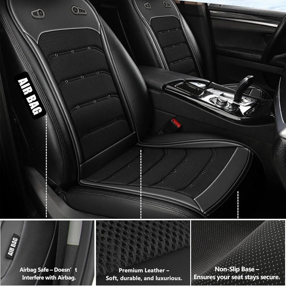 【مواد فاخرة، راحة مطورة】يتميز غطاء مقعد السيارة جيد التهوية بتصميم من 6 طبقات مع جلد فاخر، وشبكة مسامية، وإسفنج ميموري جنبًا إلى جنب مع قنوات تدفق الهواء المحسنة، مما يوفر تبريدًا متساويًا لكل فتحة تهوية. أغطية مقاعد السيارة الرائعة وأغطية مقاعد السيارات الرائعة توفر مقاعد مريحة ناعمة ومريحة وطويلة الأمد.