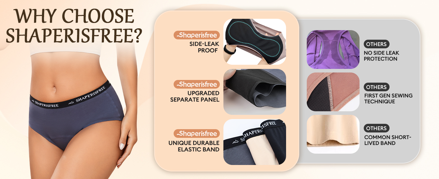 • لم تعد ملاءات السرير ملطخة بعد الآن وتناسب معظم الأوقات - استمتع بنوم آمن وسليم، سواء كنت تستلقي على ظهرك أو أمامك، مع الحماية الكاملة من الأمام إلى الخلف من Shaperisfree. لا تترددي في ارتداء هذه الملابس الداخلية الماصة للنساء لأسلوب حياة نشيط حتى في أيام صالة الألعاب الرياضية.