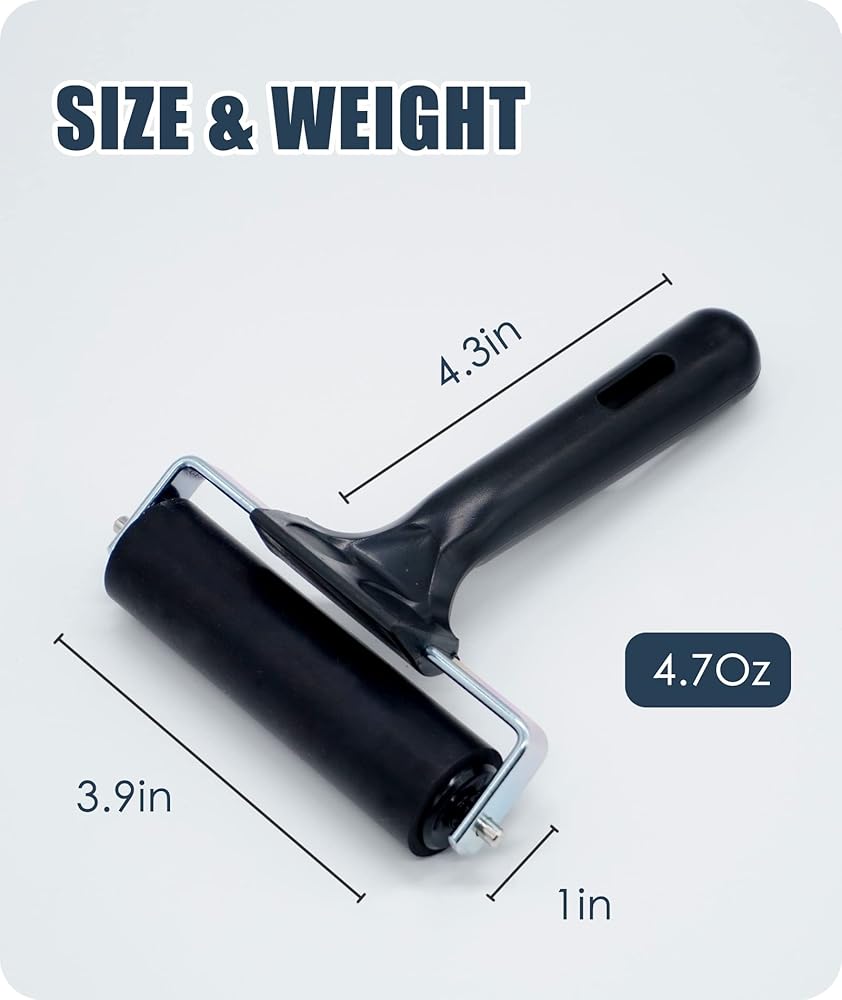 أسطوانة براير مطاطية لأدوات أرضيات القوارب - أسطوانة شريطية لتركيب التزيين، سقف RV، ورق جدران، تنعيم واسع النطاق (4 بوصات، قطعة واحدة)