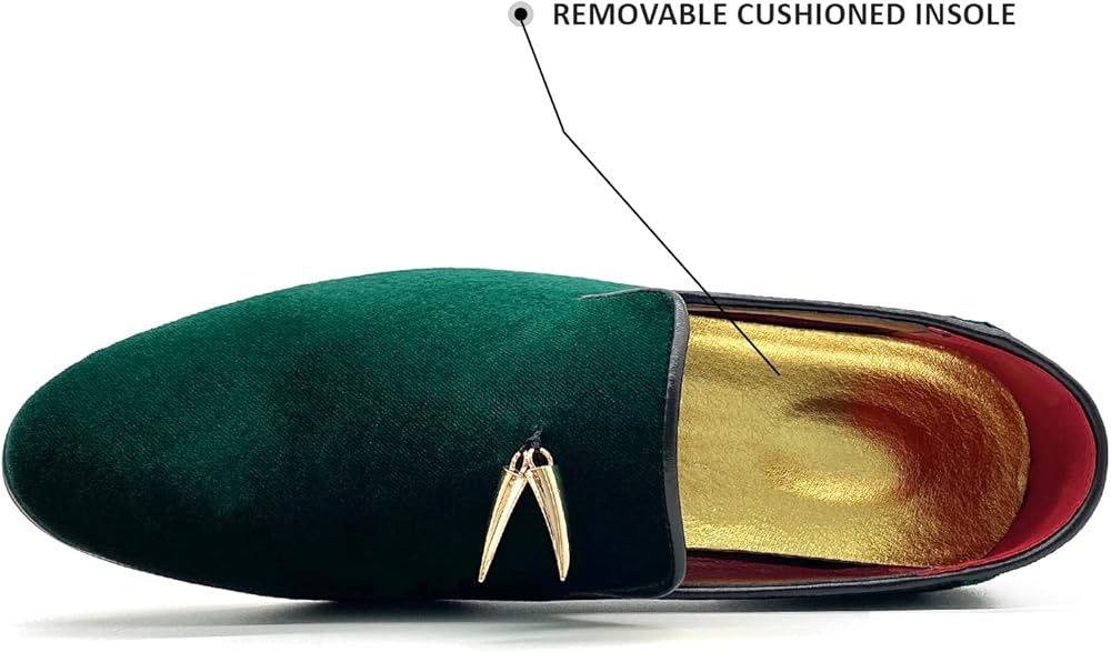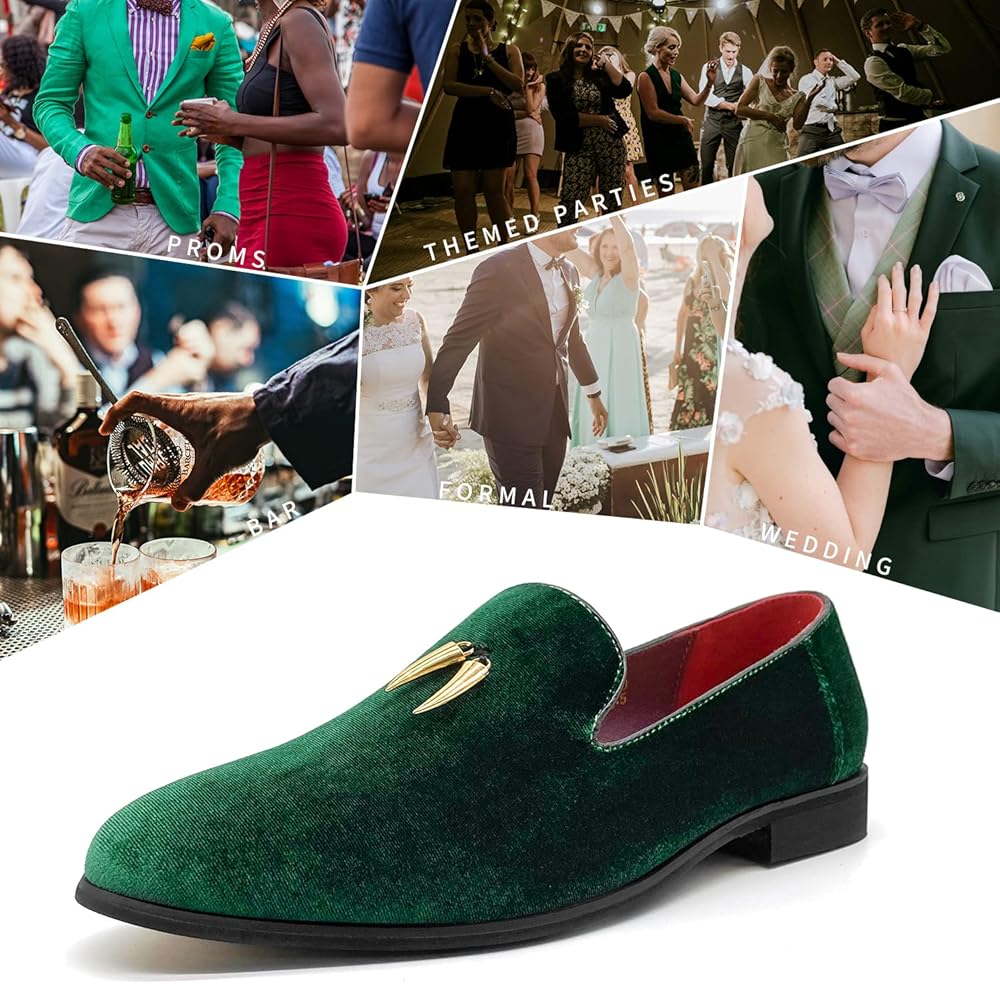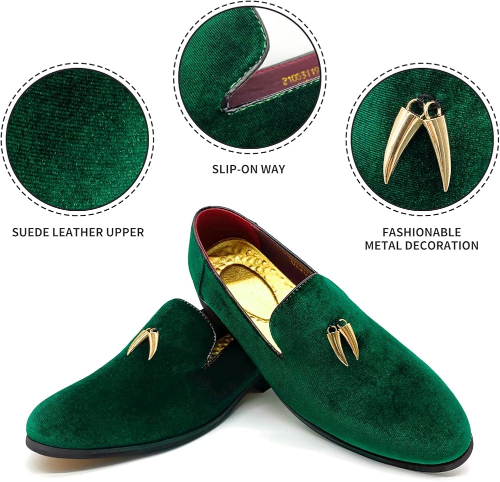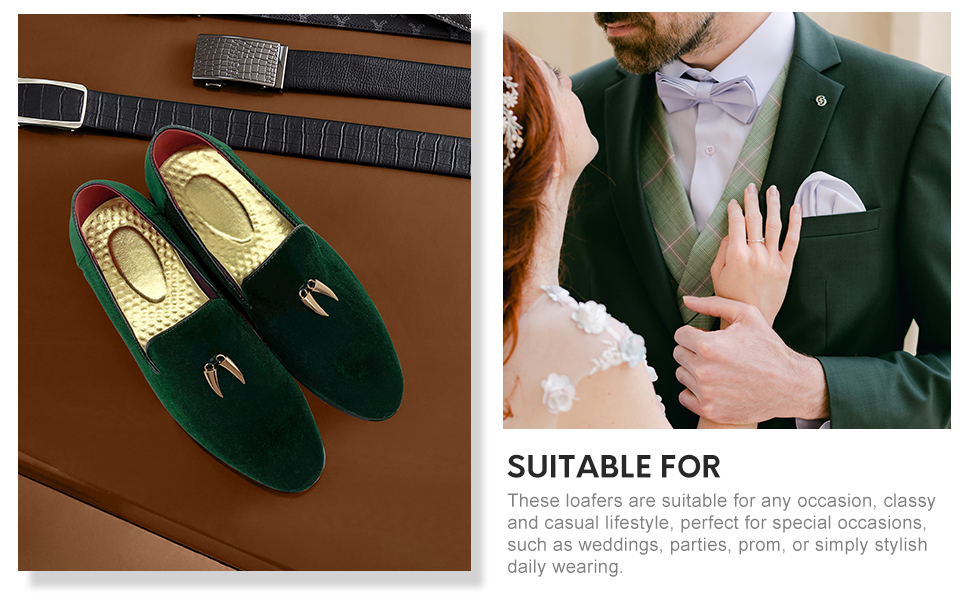 ◈【HIGN-END VELVET & QUALITY SOLE】This luxury green loafer is made of high-graded velvet upper with our designer golden ornament, for a classic and noble look. The durable non-slip rubber outsole provides just the right amount of traction as well as extended durability.