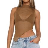 - [خامة ممتازة] - قمصان بدون أكمام شبكية شفافة، مصنوعة من مادة عالية التمدد، القماش ناعم ولطيف مثل الجلد الثاني، مع ملمس رقيق وناعم