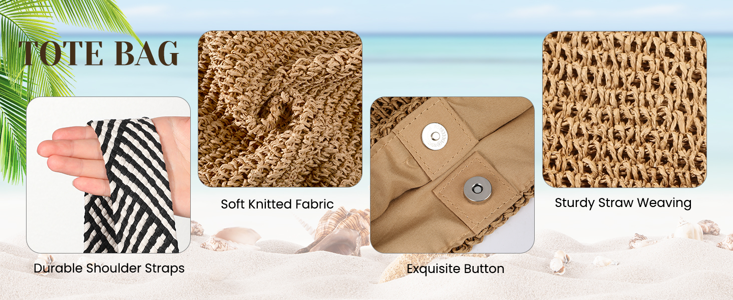 حزام DIY: تحتوي حقيبة الشاطئ هذه على حزام قابل للتعديل وقابل للتبديل مع عقدتين متقاطعتين على جانبي الحزام حتى تتمكن من فكهما وتغييره وضبط طول حقيبة الشاطئ. فقط حاول أن تصمم حقيبة الشاطئ الخاصة بك! النمط الحصري يجعلك تتمتع بصيف فريد وتكون محط أنظار الجميع.