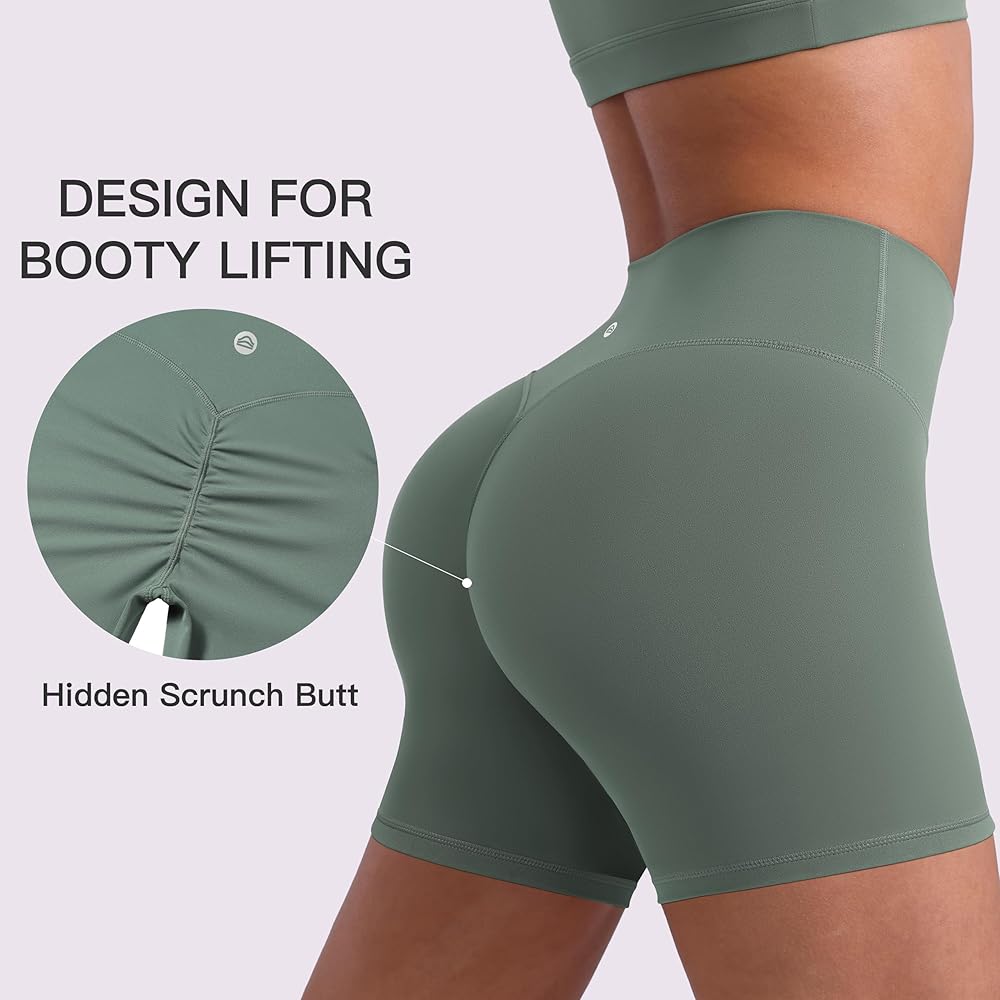 ENERBLOOM نسائي شورت لراكبي الدراجات النارية 2.5" /4" / 6" عالي الخصر بدون درزات أمامية يوغا مخفي Scrunch ركض صيفي الصالة الرياضية قصيرة