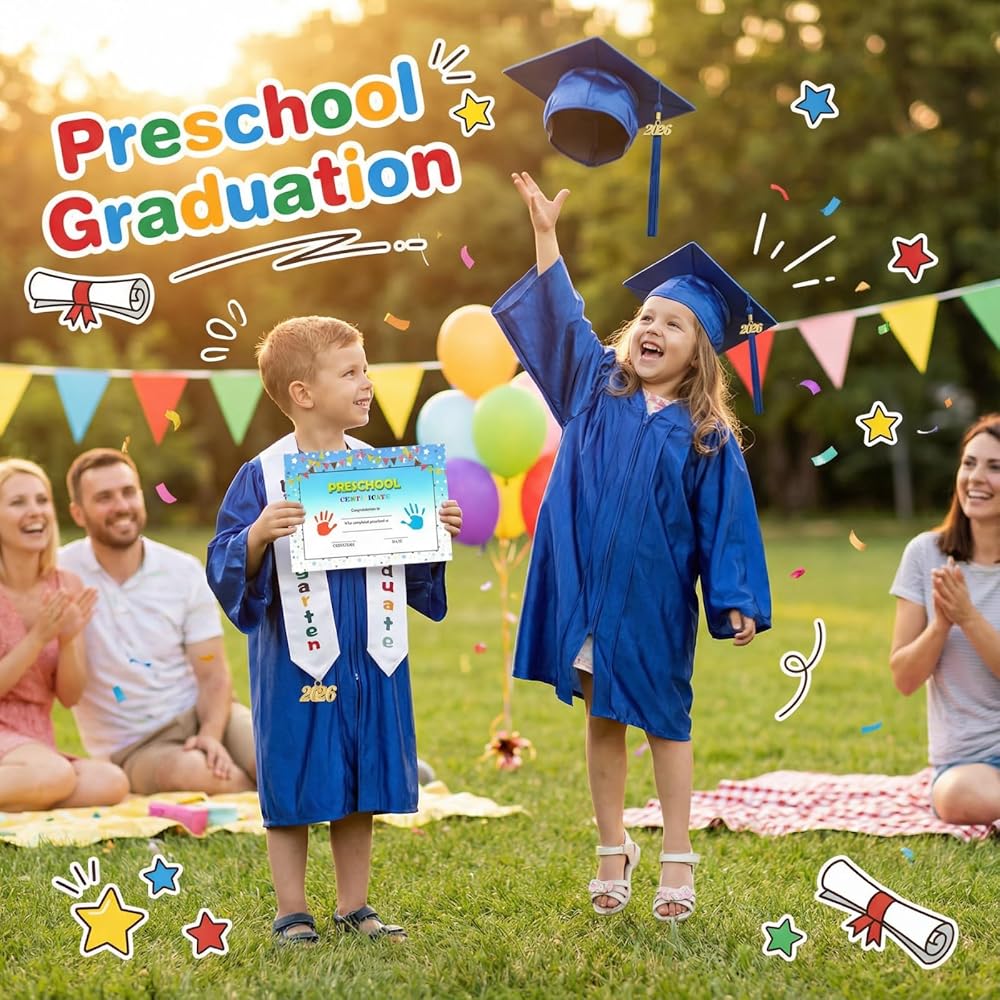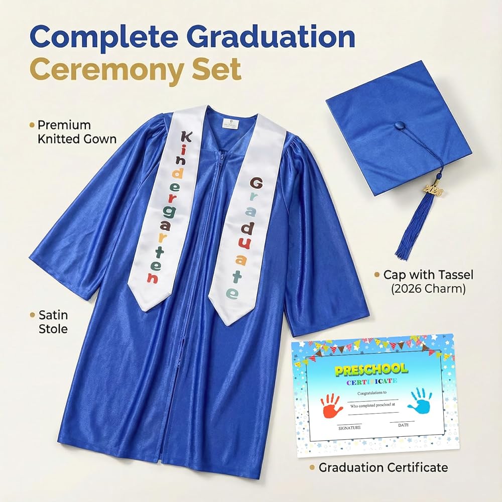 جاهز للمناسبات المتعددة: مثالي لحفلات التخرج في رياض الأطفال، وحفلات التخرج 2026 و2027، أو جلسات التصوير، أو حفلات توزيع الجوائز. نسيج مقاوم للتجاعيد يظل مثاليًا للكاميرا