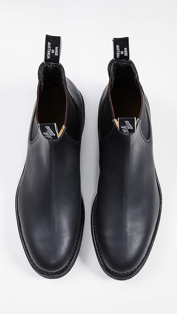 An all-black pair of R.M. Williams's legendary desert boots, featuring the brand's traditional double-tag top line and painstaking construction.