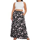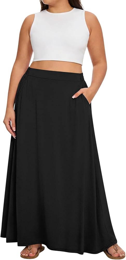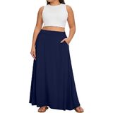 تنورة Yincro النسائية الطويلة بمقاس كبير مرنة عالية الخصر كاجوال على شكل حرف A تنانير طويلة واسعة مع جيوب in Kuwait