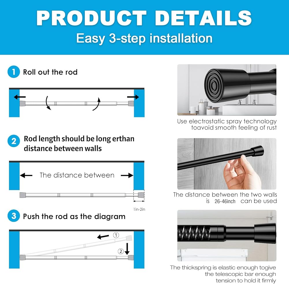 【مهم رضاك】نحن هنا لمساعدتك على تصميم مساحتك بثقة. هل لديك أسئلة حول ما إذا كان قضيب الستارة الربيعي هذا يناسب نافذتك مقاس 17-38 بوصة؟ فريق الدعم لدينا على أهبة الاستعداد. قم بقياس المساحة الخاصة بك، واختر أسلوبك، وقم بتحويل أي غرفة بسهولة. إعداد أحلامك على بعد قضبان توتر واحدة فقط.