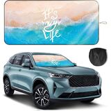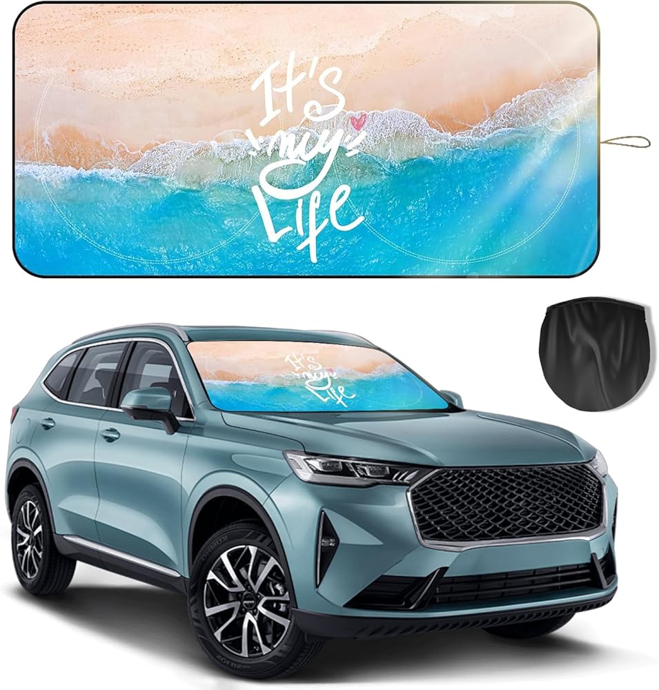 Upgrade your daily driving experience with this 63" × 28.5" universal windshield sun shade, engineered for superior heat protection and convenience. The innovative double steel ring frame ensures stability and prevents deformation, outperforming traditional single-ring designs. Its adjustable overlapping center section allows the shade to fit a wide range of windshield sizes, making it compatible with most sedans, SUVs, minivans, and trucks. Crafted from high-density reflective material, it effectively blocks harmful UV rays, reduces interior heat, and protects dashboards and interiors from sun damage. The foldable structure allows for quick installation and compact storage inside the included fabric pouch. Choose from multiple stylish printed designs to add personality to your car while staying cool and protected. Ideal for daily commuters, road trips, parked vehicles, and anyone who wants reliable sun protection with a touch of custom style.
