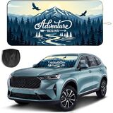 مظلة شمسية للزجاج الأمامي للسيارة، مقاس 63 بوصة × 28.5 بوصة، مظلة نافذة أمامية ملائمة عالميًا مع إطار حلقة فولاذية مزدوجة، مظلة شمس للسيارة، غطاء زجاج أمامي للحماية من الأشعة فوق البنفسجية مع حقيبة تخزين (مغامرة) in Kuwait