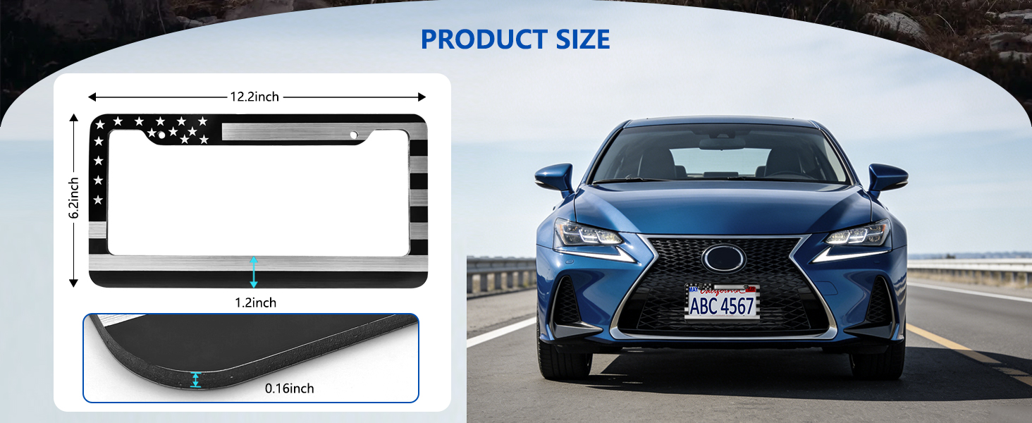 • إطار لوحة ترخيص العلم الأمريكي: مصنوع من مركب الألومنيوم والبلاستيك المصقول الممتاز بسمك 4 مم. توفر هذه المادة التوازن المثالي - مقاومة الصدأ والتآكل والطقس القاسي مع الحفاظ على وزن خفيف بشكل استثنائي لسهولة التعامل ومظهر أنيق يدوم طويلاً.