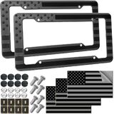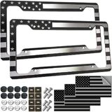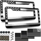إطار لوحة ترخيص العلم الأمريكي - حامل إطار علامة سيارة وطني أسود بالولايات المتحدة الأمريكية، عبوتان من هجين من البلاستيك الشب مع لمسة نهائية مصقولة وملصقات أغطية براغي
