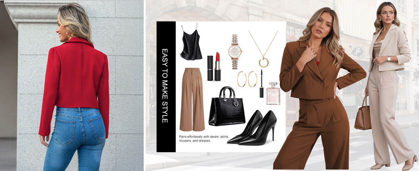 • صُممت هذه السترة القصيرة للنساء بتصميم أقصر، وهي تطيل الساقين بصريًا وتحسن أبعادها، وتوفر مظهرًا عصريًا مخصصًا يرتقي بالملابس اليومية.