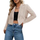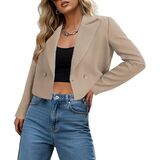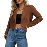 سترة Ahlaray النسائية الكاجوال للعمل - مزدوجة الصدر وأكمام طويلة وياقة طية صدر السترة سترة قصيرة للعمل والمكتب in Kuwait