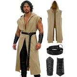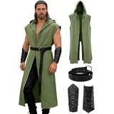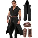 مجموعة أزياء عصر النهضة الرجالية من Verceco - زي القرون الوسطى/عصر النهضة للرجال مع معطف بغطاء للرأس وحزام جلدي ودعامات in Kuwait