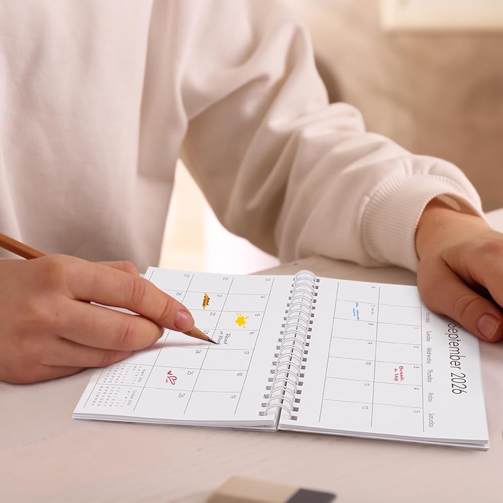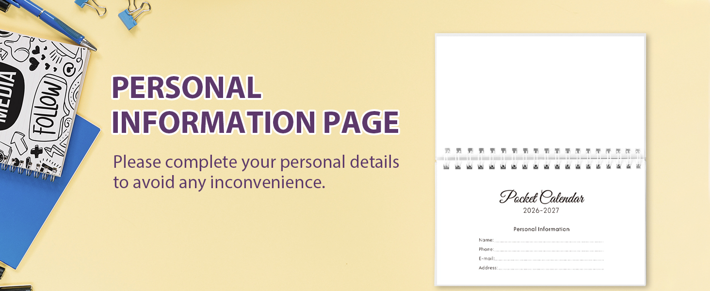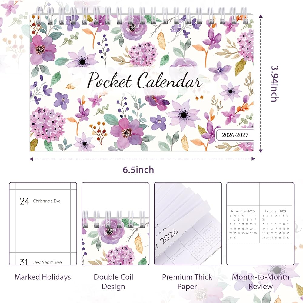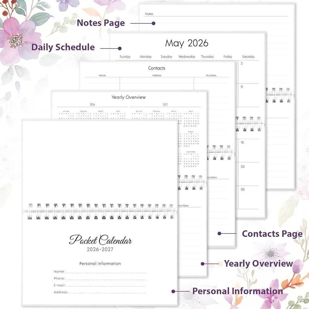 محمول وعملي: تقويم الجيب هذا 2026-2027 (6.5 بوصة × 4.1 بوصة) خفيف الوزن وصغير الحجم، مثالي للتنقل أو السفر أو الاستخدام اليومي. يمكن وضعها بسهولة في أي حقيبة، مما يسمح لك بالتحقق من الخطط وتدوينها أثناء التنقل