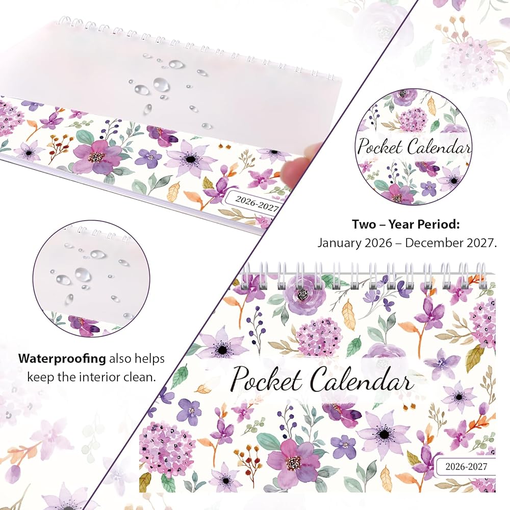 نظرة عامة شهرية: يغطي تقويم الجيب هذا من يناير 2026 حتى ديسمبر 2027، ويتميز بتصميمات مصممة بعناية مع مساحة واسعة للمواعيد اليومية وقوائم المهام والتذكيرات المهمة - حتى تتمكن من تعزيز إنتاجيتك وإدارة الوقت بشكل رئيسي.