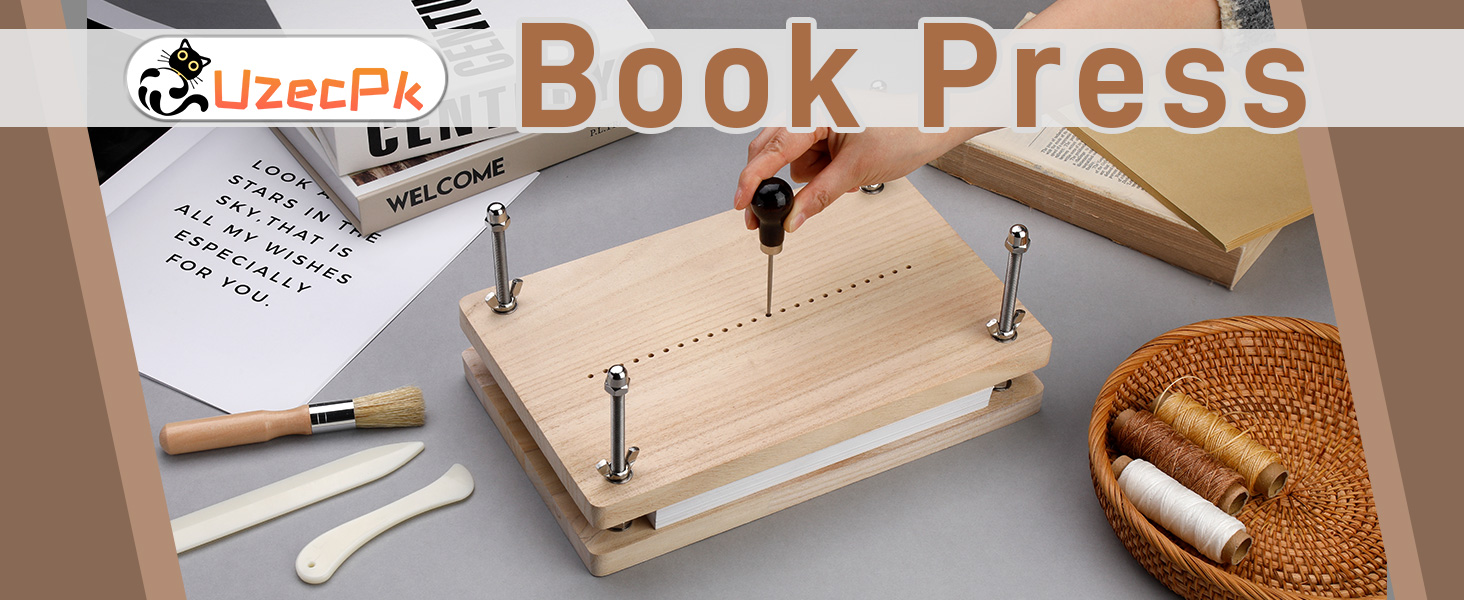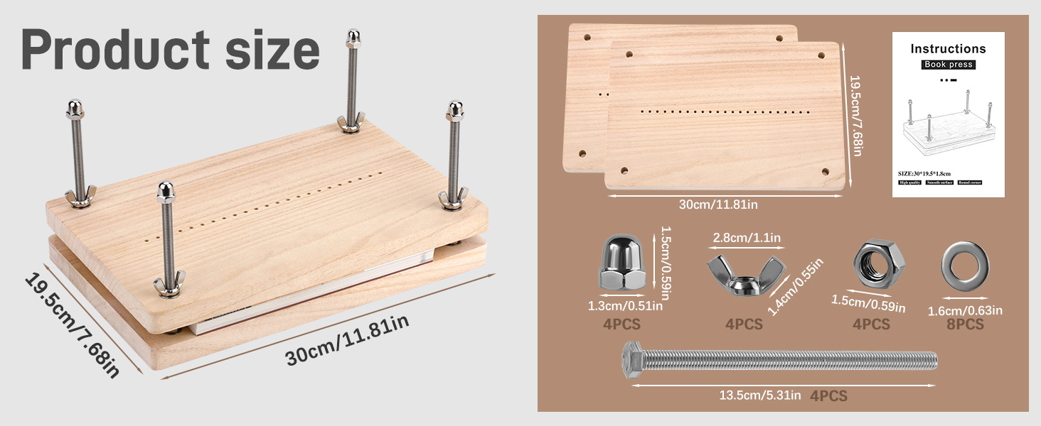 تجليد الكتب بالضغط: قياس ضغط الكتب 11.8 × 7.6 بوصة وسمك 0.67 بوصة، ضغطة تجليد الكتب قوية ومتينة، مصنوعة من خشب عالي الجودة. تعتبر مكبس تجليد الكتب خيارًا مثاليًا لتجليد الكتب