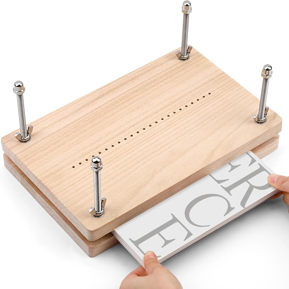جودة لوازم تجليد الكتب: مكبس تجليد الكتب مصنوع من خشب عالي الجودة وهو قوي ومتين. تتميز لوحة الكتب الخاصة بنا لتجليد الكتب ذات الزوايا الدائرية والمظهر الناعم ببنية متينة مصفحة بشكل متقاطع، مما يضمن المتانة