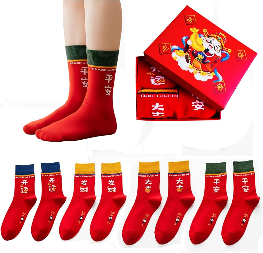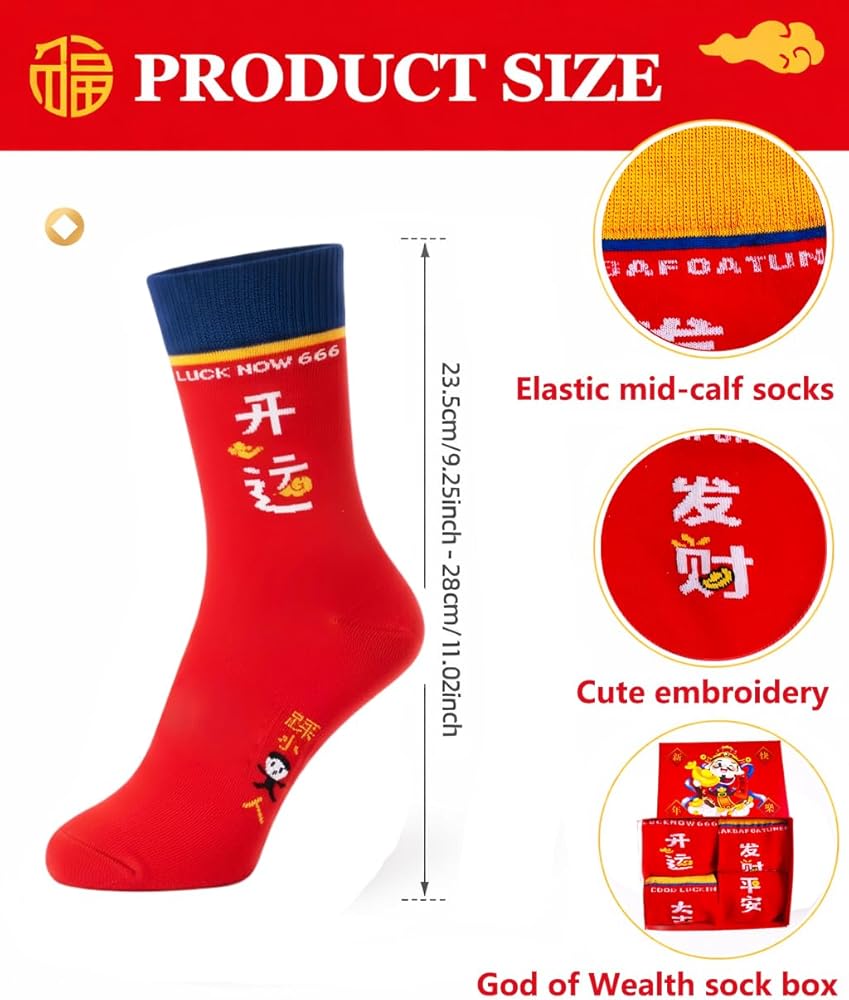 • Perfect New Year Gift: Ideal for both men and women, these socks make a thoughtful and fun gift for Chinese New Year, expressing well wishes of happiness, fortune, and peace to loved ones.