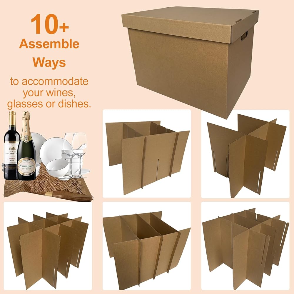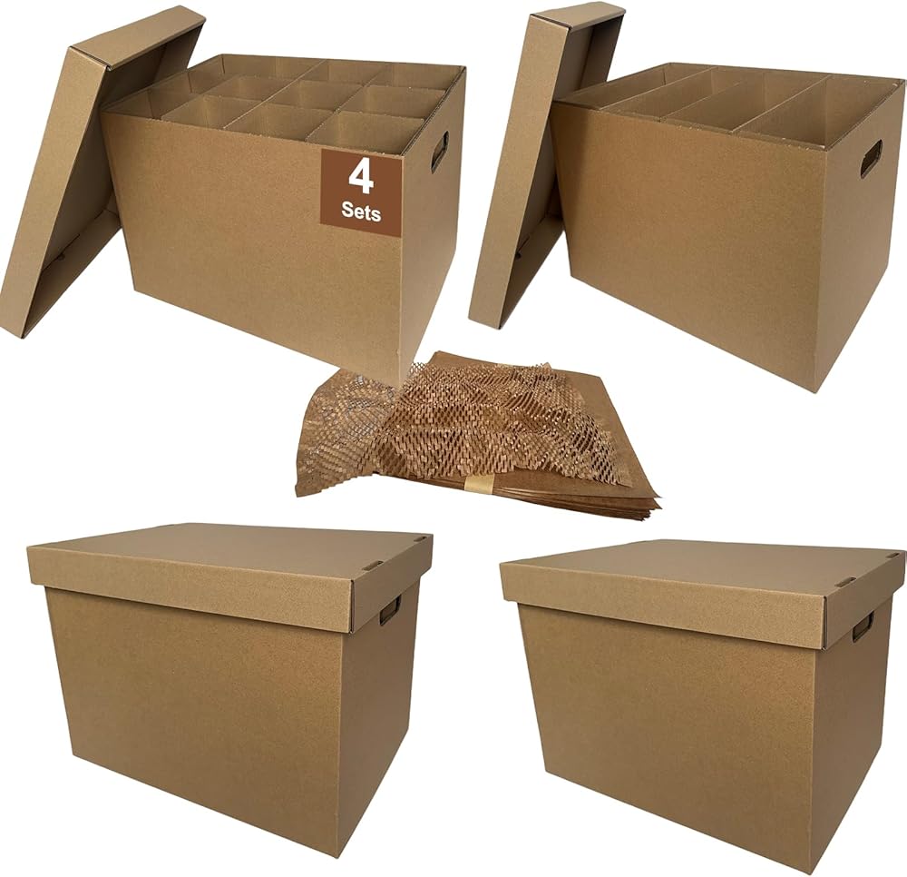 • عبوة قيمة مكونة من 4 قطع - تتضمن 4 مجموعات من الصناديق المتحركة مقاس 17 × 12 × 12 بوصة، و4 مجموعات من مجموعات الأطباق أو الفواصل الزجاجية، و50 قطعة من أغطية الوسائد الورقية مقاس 11.8 × 11.8 بوصة، والتي يمكن أن تمتد إلى 11.8 × 18 بوصة للتغليف